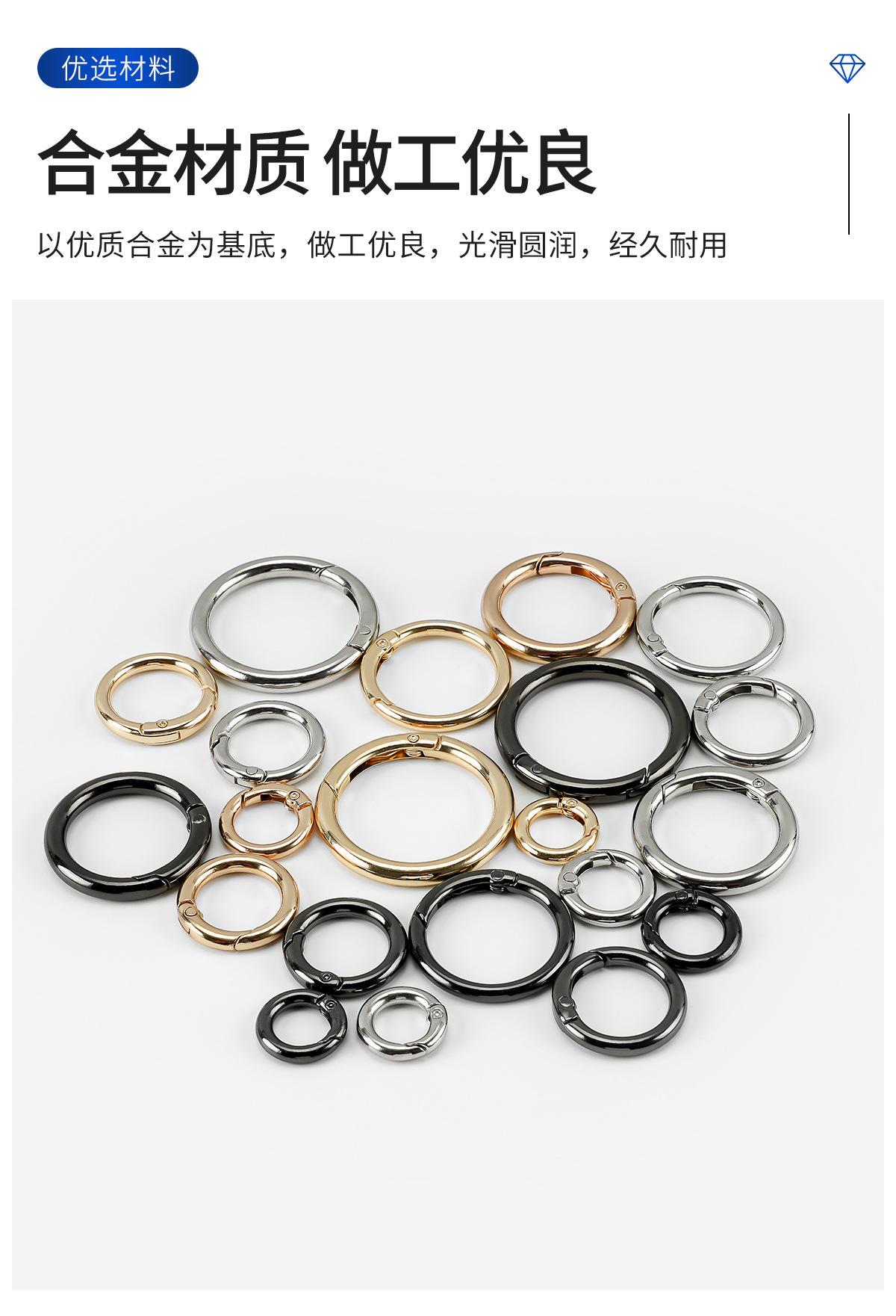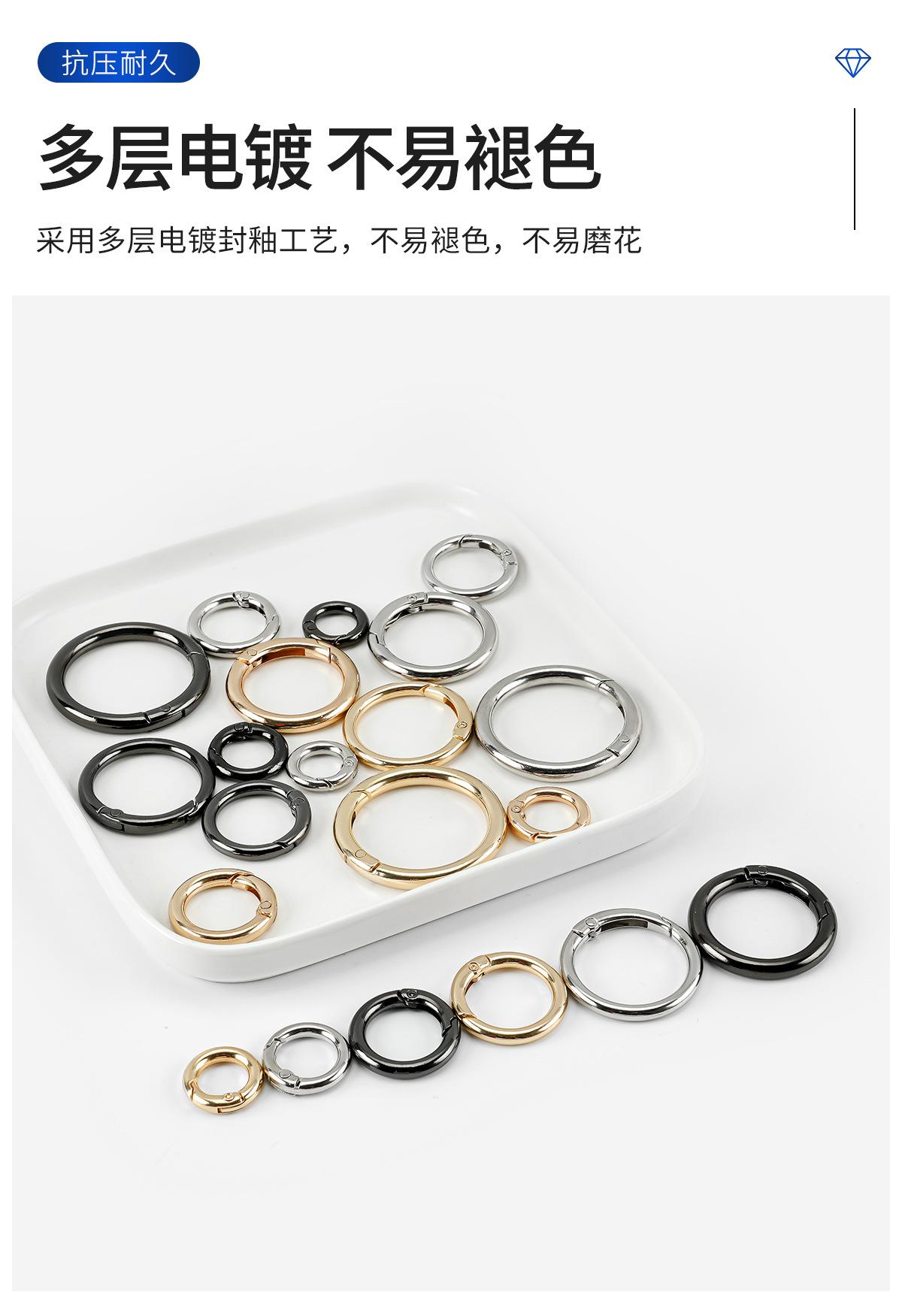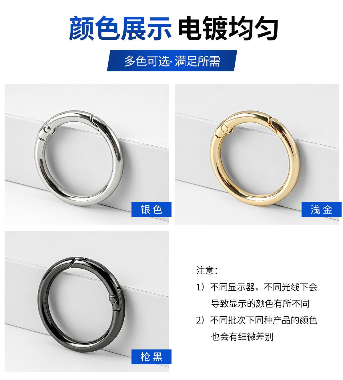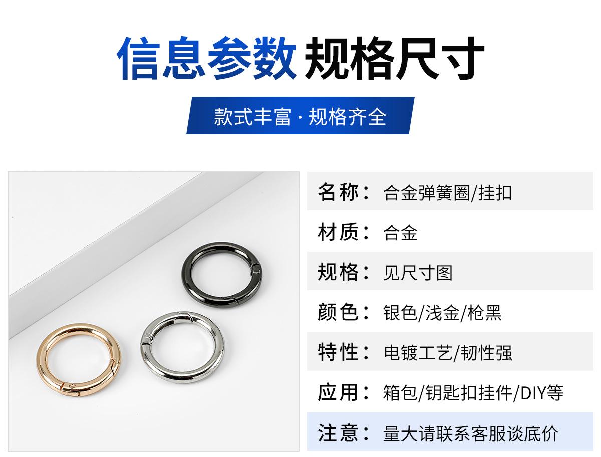 Anillo de resorte de aleación de zinc transfronterizo de fábrica, anillo abierto de metal, llavero, accesorios de ferretería para bolso, hebilla de anillo redondo al por mayor