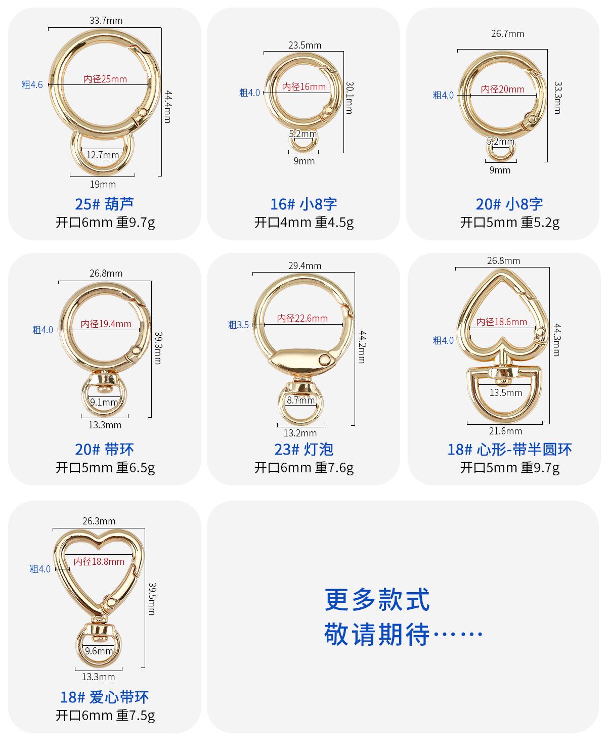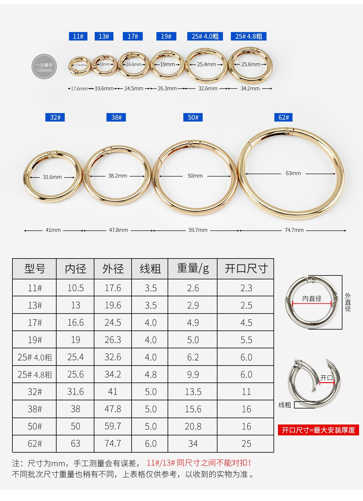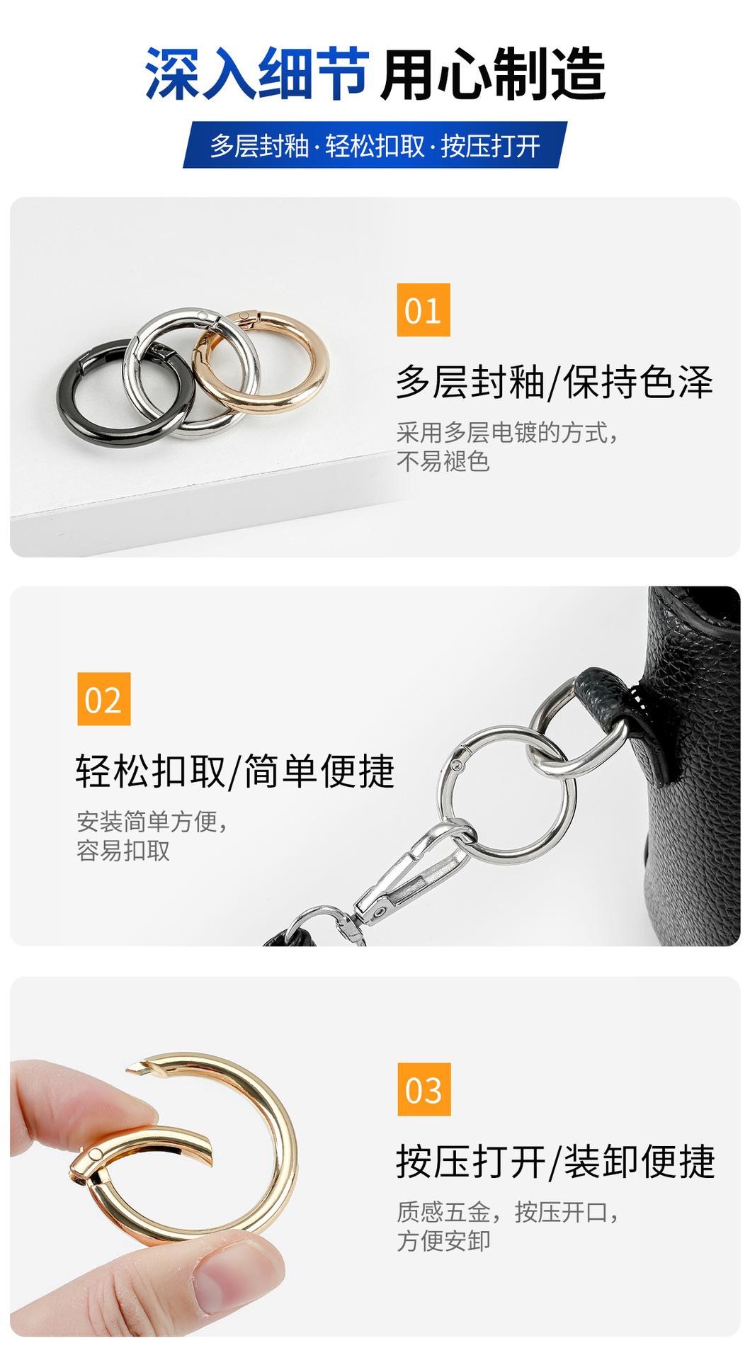 Anillo de resorte de aleación de zinc transfronterizo de fábrica, anillo abierto de metal, llavero, accesorios de ferretería para bolso, hebilla de anillo redondo al por mayor