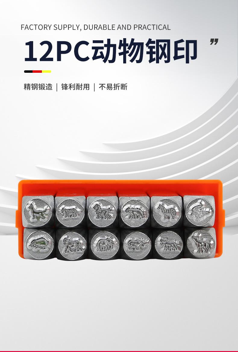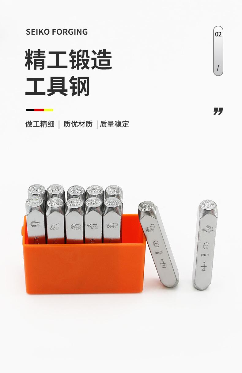 6MM 12 piezas sello de acero animal sello de acero para cuero letra troquel de impresión punzón DIY tallado de cuero herramienta anillo de plata