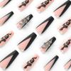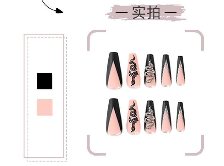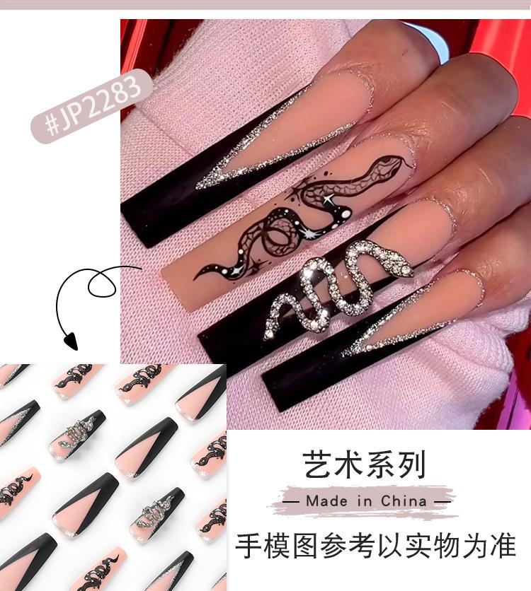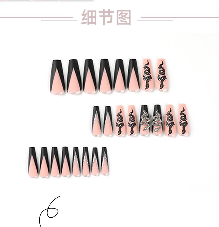 Manicura terminada uñas postizas negras francesas esmeriladas con pedrería en forma de serpiente usar esmalte de uñas pieza venta al por mayor pieza de uña terminada venta al por mayor
