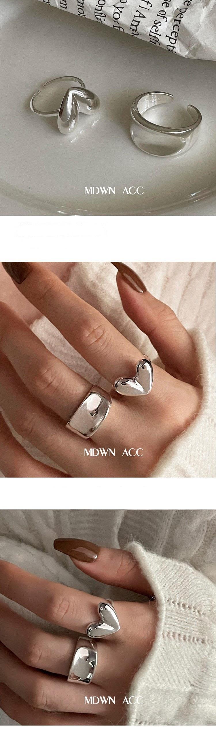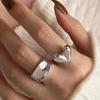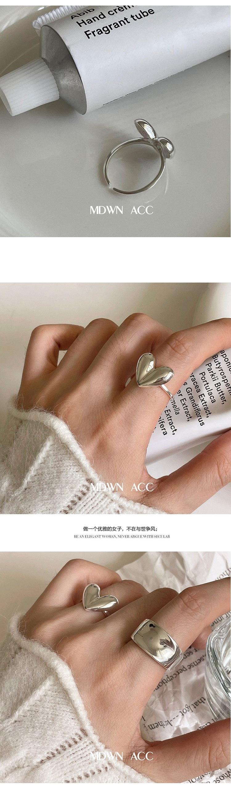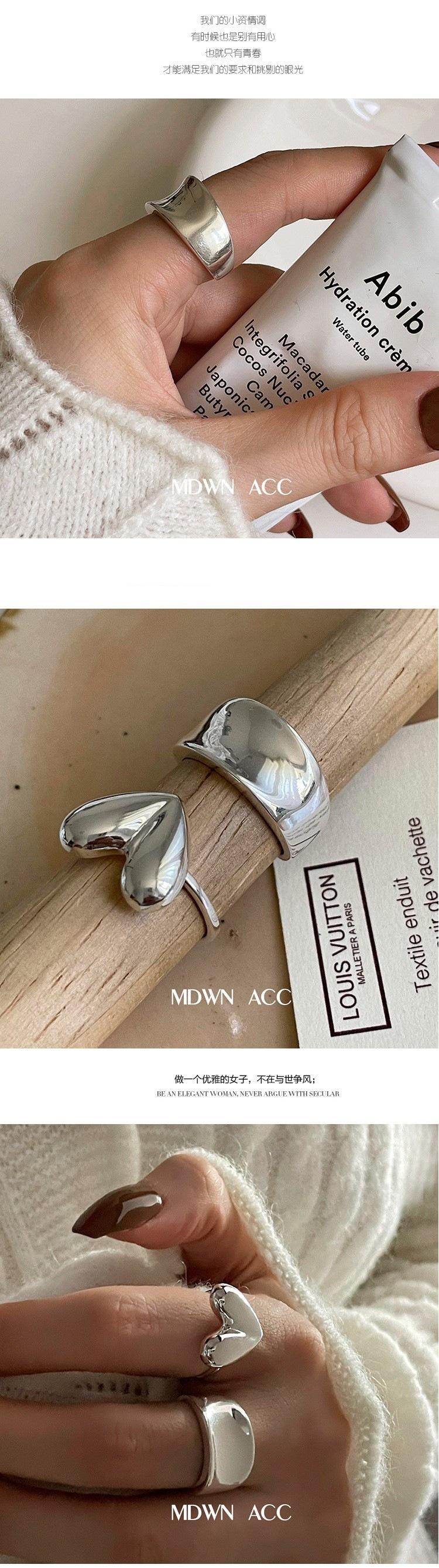 Anillo de Corazón Tridimensional para Mujer, Estilo Simple y Minimalista, Anillo Abierto Metal Plateado S925, Anillo de Dedo Índice Versátil de Alta Gama
