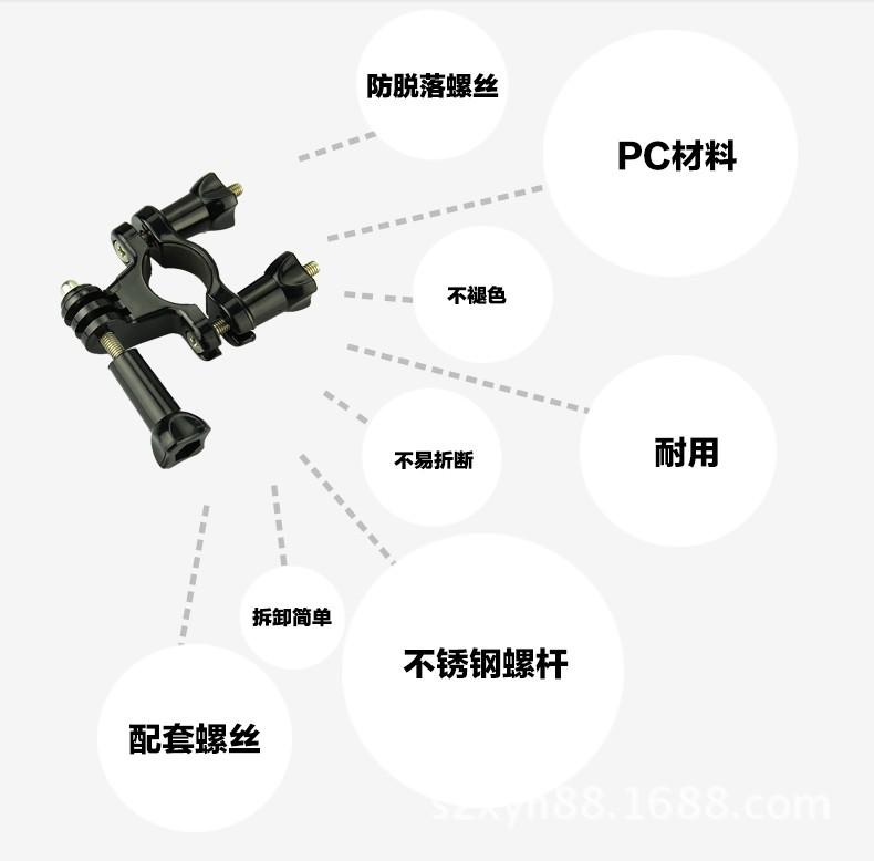 Este modeloGoProEl soporte para bicicleta accesorio es adecuado para cámaras de acción GOPRO. ¡Usa este soporte GoPro para fijar la cámara en el diámetro delantero de la bicicleta, y podrás realizar tu deseo de grabar los momentos clásicos en el camino mientras pedaleas! Con él, no importa cuán accidentado sea el camino o cuán accidentada sea la carretera de montaña, no afectará la estabilidad de la cámara fija. Es un accesorio para amigos a los que les gustan los deportes al aire libre -----GoProAccesorios
