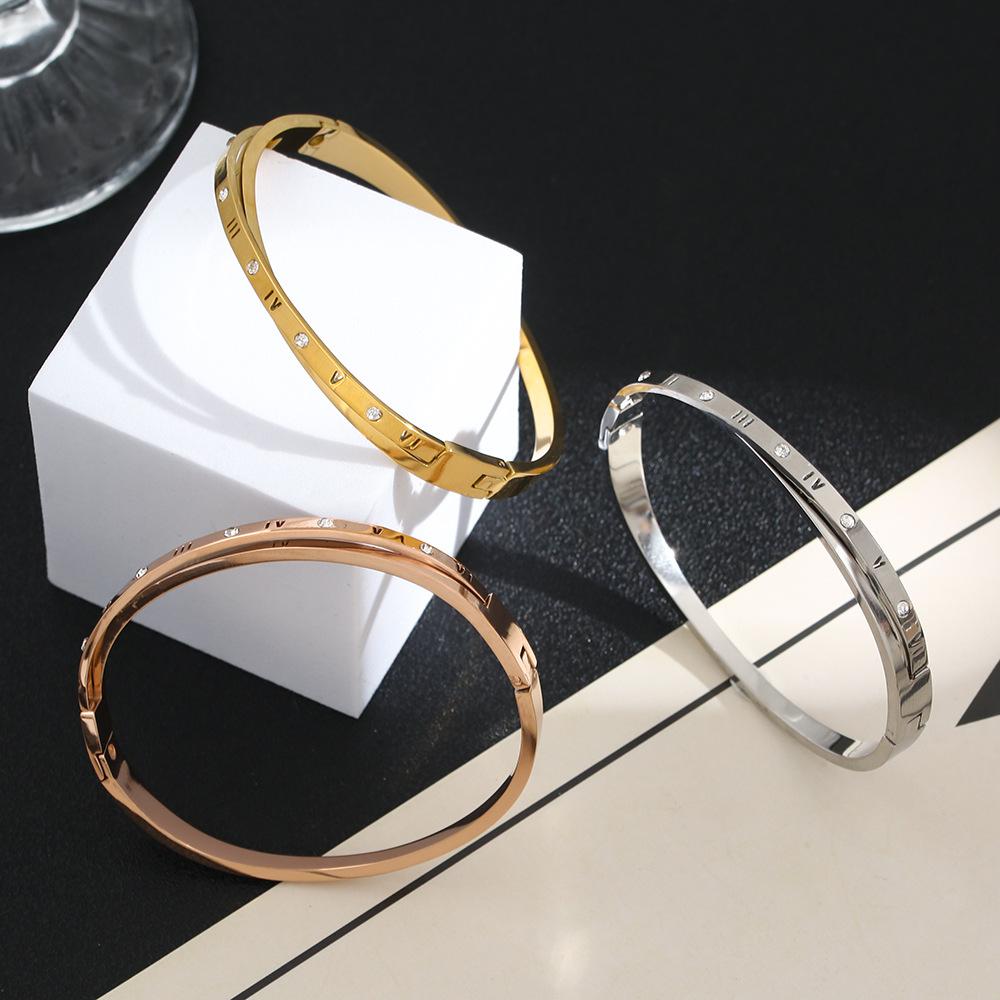 Pulsera de moda europea y americana Cruz acero titanio pulsera femenina números romanos TISCO accesorios de pulsera pulsera de doble hebilla