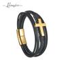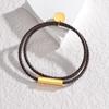Amazon popular pulsera de acero inoxidable de doble capa tejida de cuero PU para mujer estilo punk ins joyería para pareja al por mayor