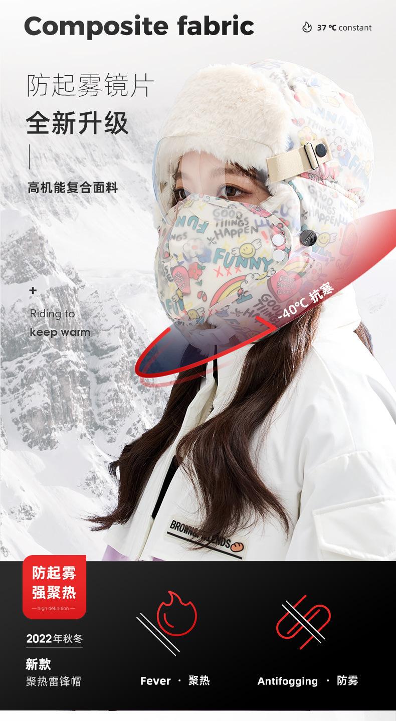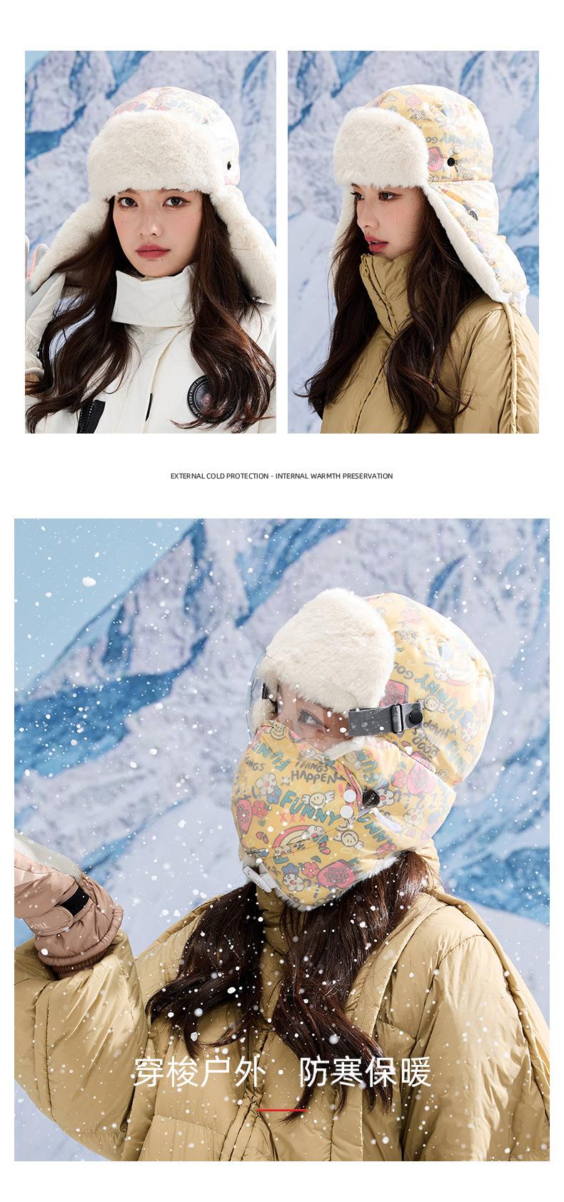 Sombrero de Invierno para Mujer Cálido para Exterior Protección de Orejas Noreste Sombrero Lei Feng para Mujer Otoño e Invierno para Montar Coche Eléctrico Sombrero Frío Cortavientos