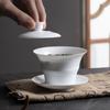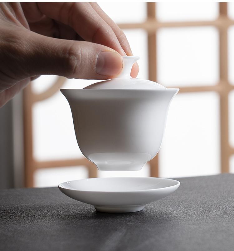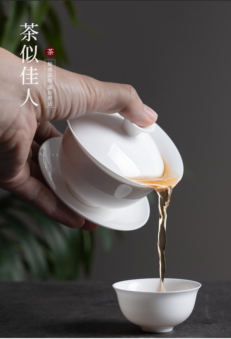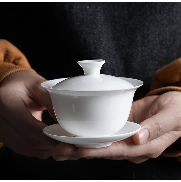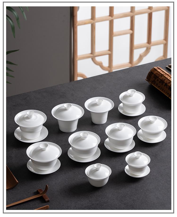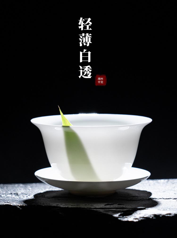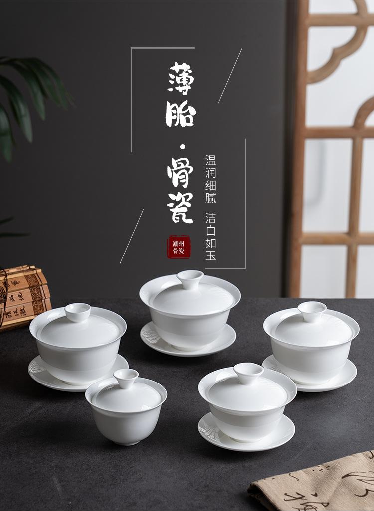 Juego de té de porcelana china de hueso Xingjiang Chaozhou con tres cuencos y tapa Cai, tetera oolong de alta densidad transparente y ligera, juego de té de kung fu