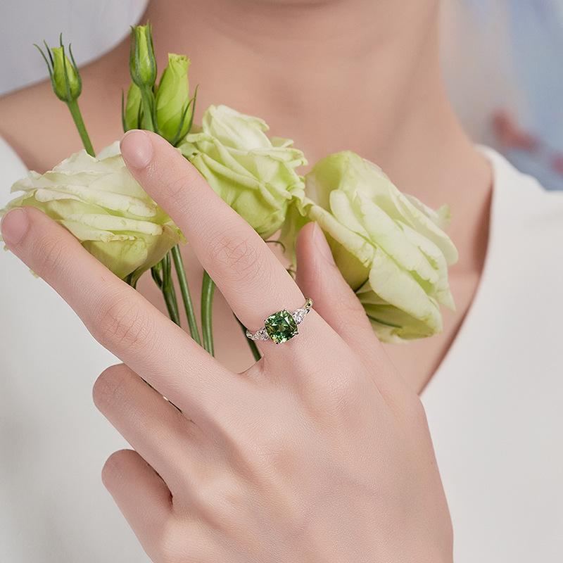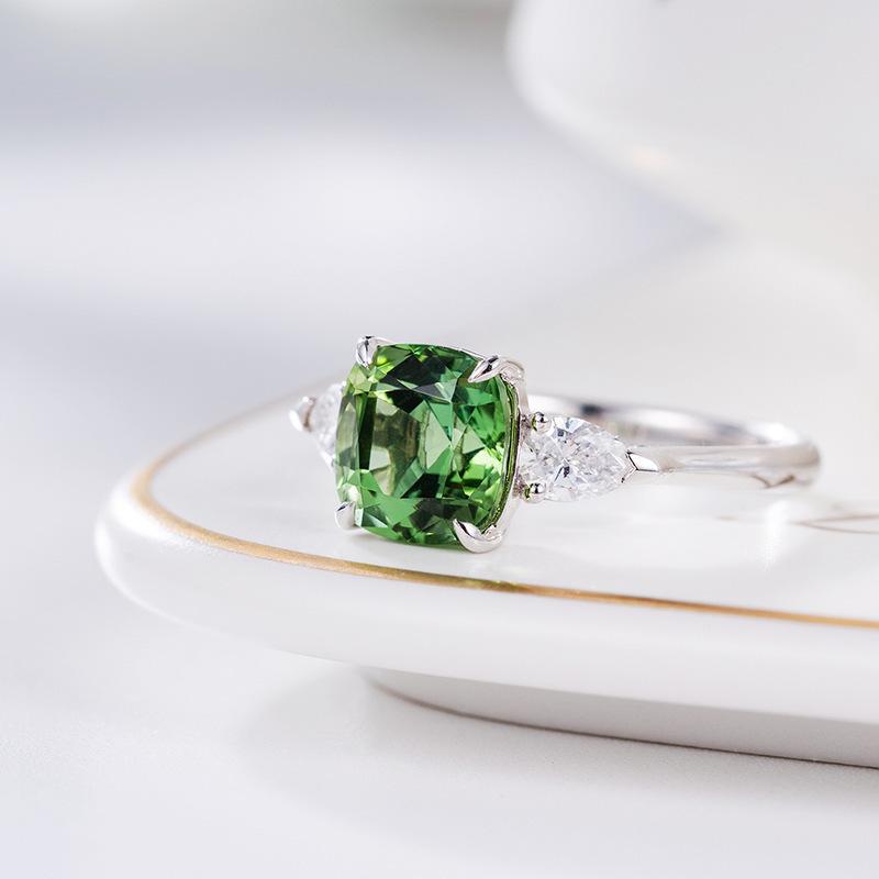 Transmisión en vivo nuevo estilo imitación turmalina verde natural anillo de diamante cuadrado temperamento verde manzana Diario hermoso tesoro colorido anillo abierto