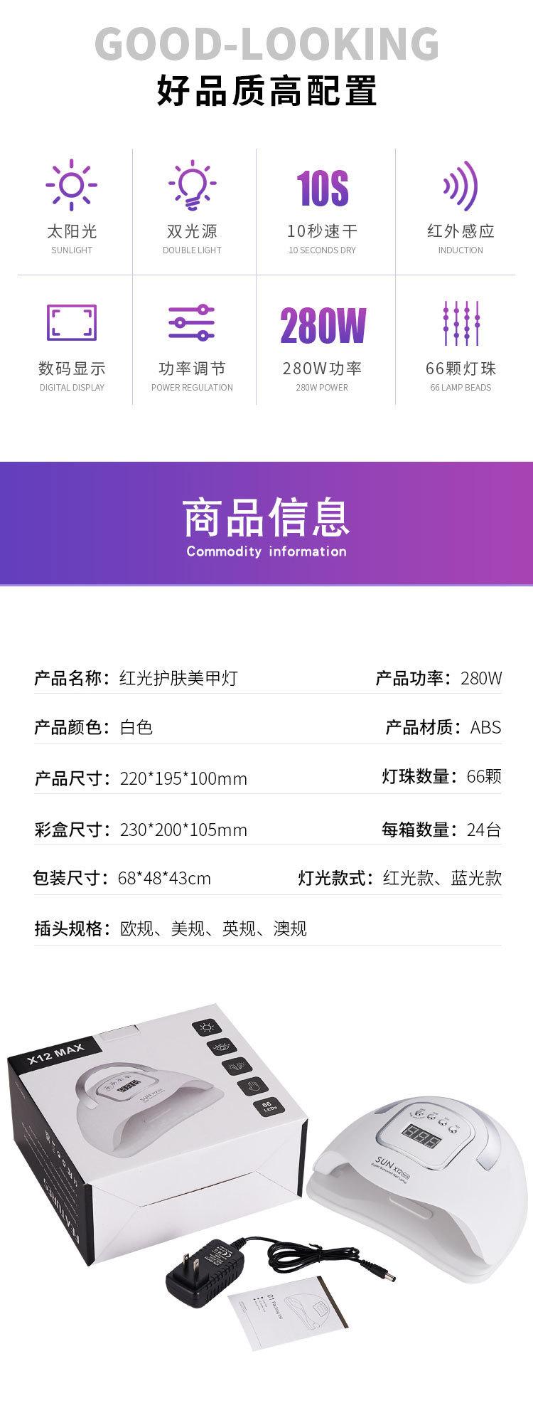 Lámpara de uñas portátil de fototerapia, lámpara de uñas roja para salón de uñas, lámpara de secado de uñas en gel, lámpara UV de alta potencia.