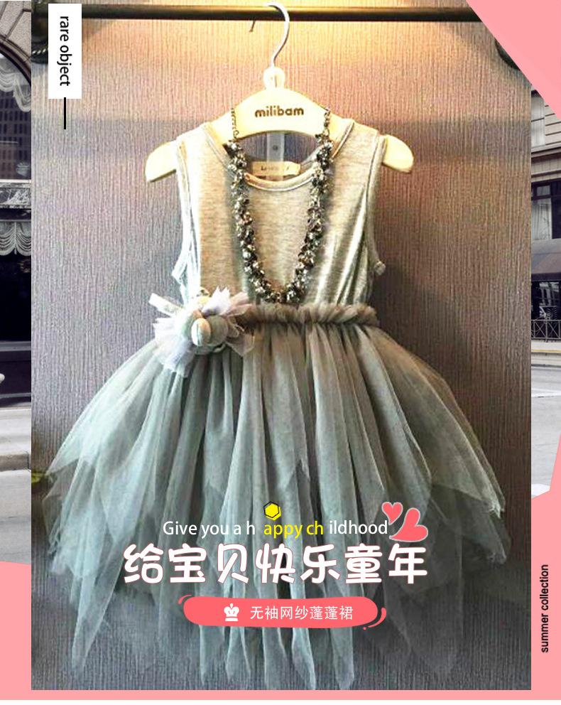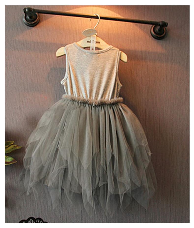 Vestido de Niña Verano Nuevo Irregular Vestido Chaleco Sin Mangas Malla Falda Puff Falda de Princesa para Niños