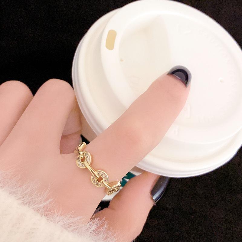 Anillo de Círculo Dulce y Cool con Diamantes Completos Diseño Nicho Versátil Lujo Ligero Moderno Personalizado Anillo de Dedo Sentido Avanzado Anillo Ins