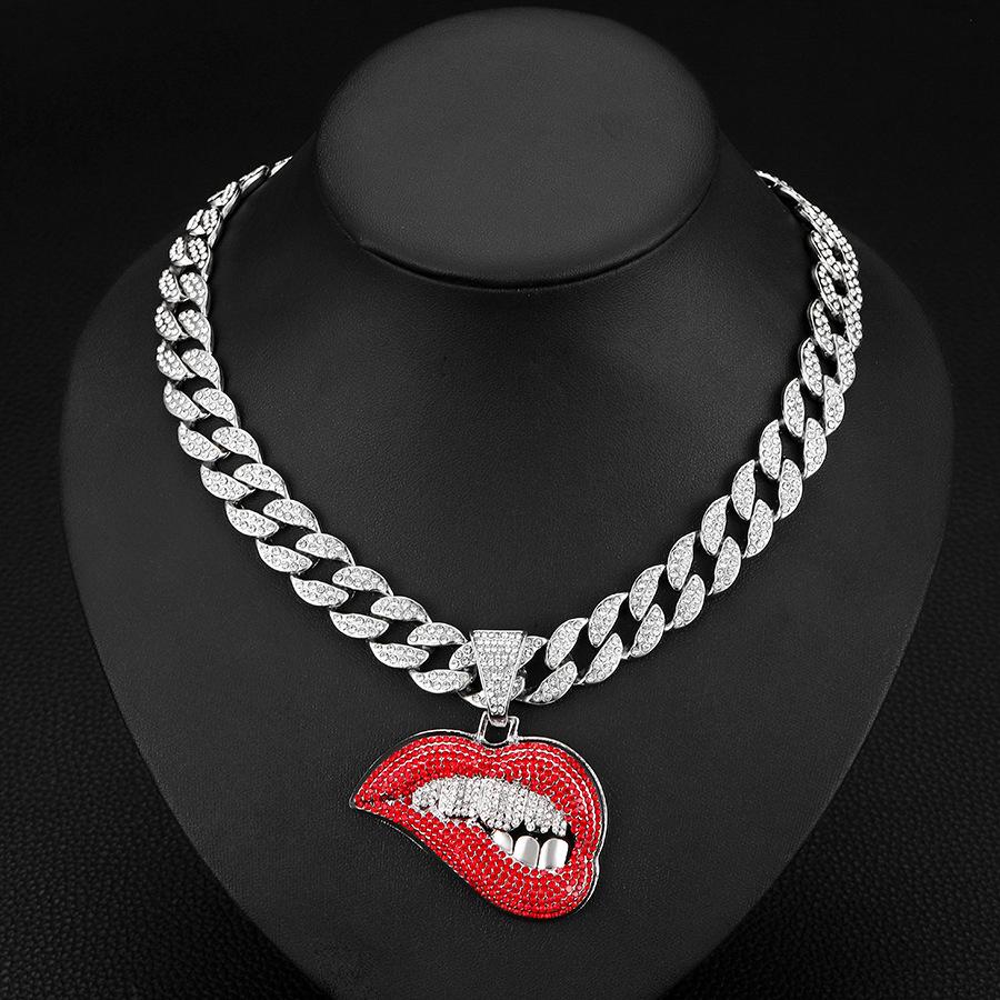 Aleación europea y americana sexy morder labio hip hop personalidad colgante creativo hip hop collar cadena cubana para transfronterizo