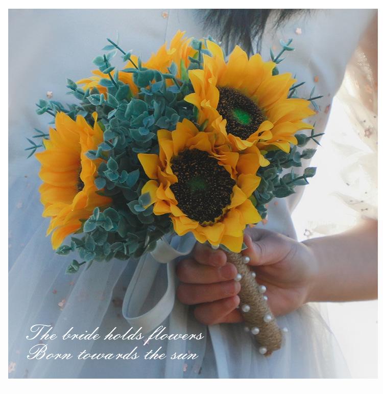 Compra Simulación de novia con girasoles y flores. Productos para bodas occidentales. Accesorios para fotografía de bodas. Festival de las abejas con flores. al por mayor en Joom.pro