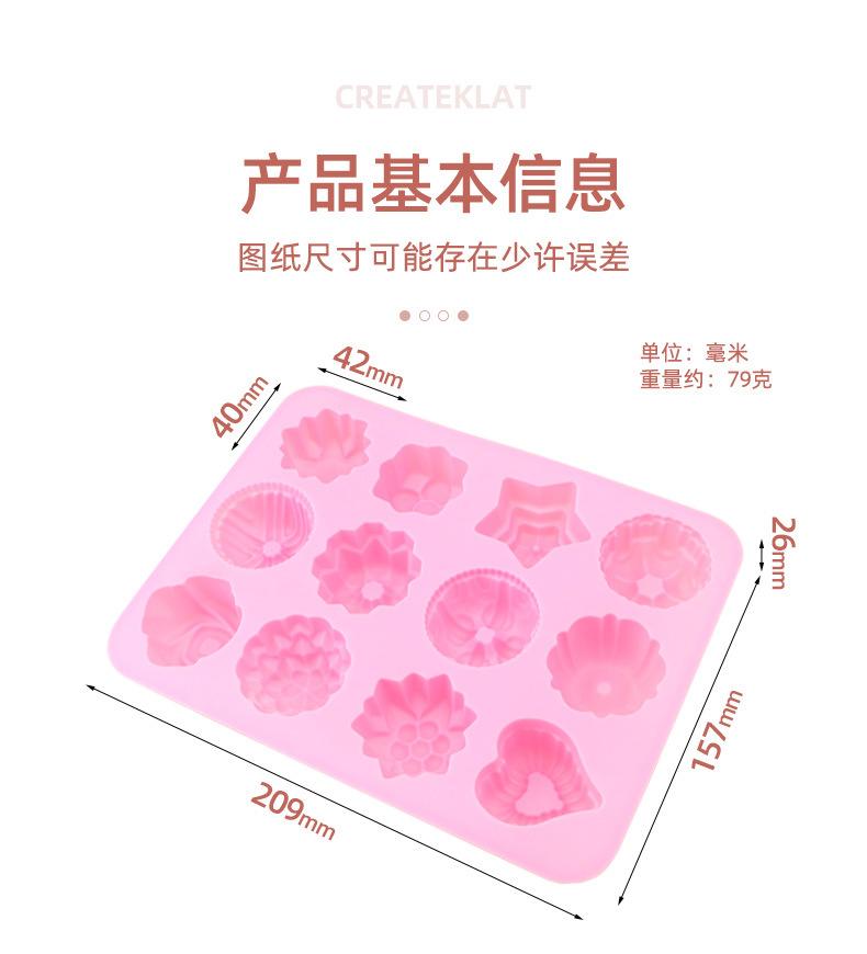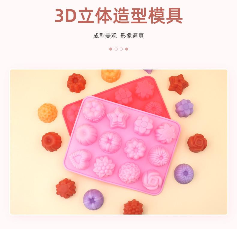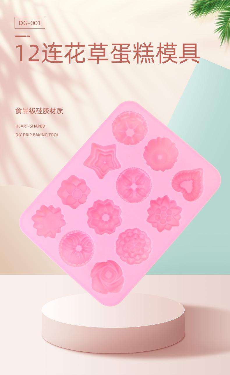 Suministro directo de fábrica transfronterizo molde de silicona para pastel 12 con flores y plantas molde de silicona para pastel de luna diy hecho a mano molde para galletas de chocolate