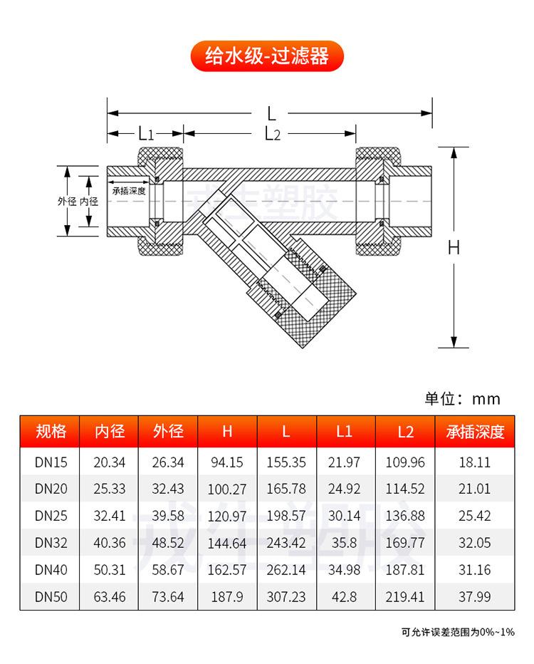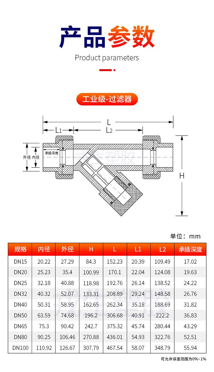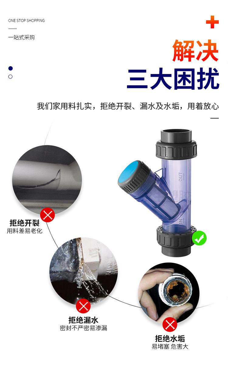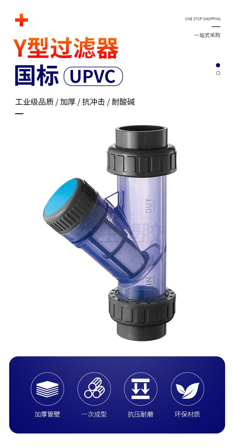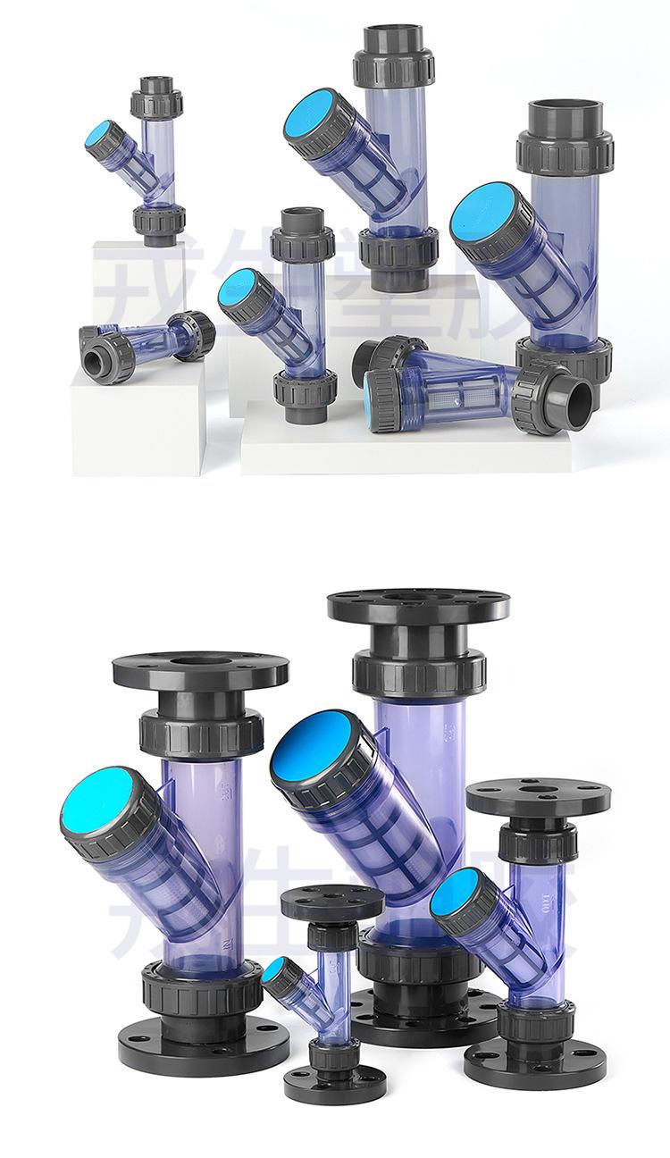 Filtro en Y para Tubería de Agua de PVC-U Accesorios para Tubería de PVC Químico Válvula de Plástico Transparente Dn25 32 40