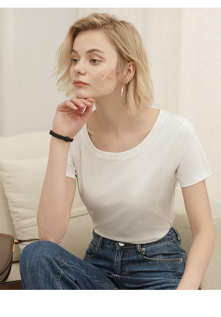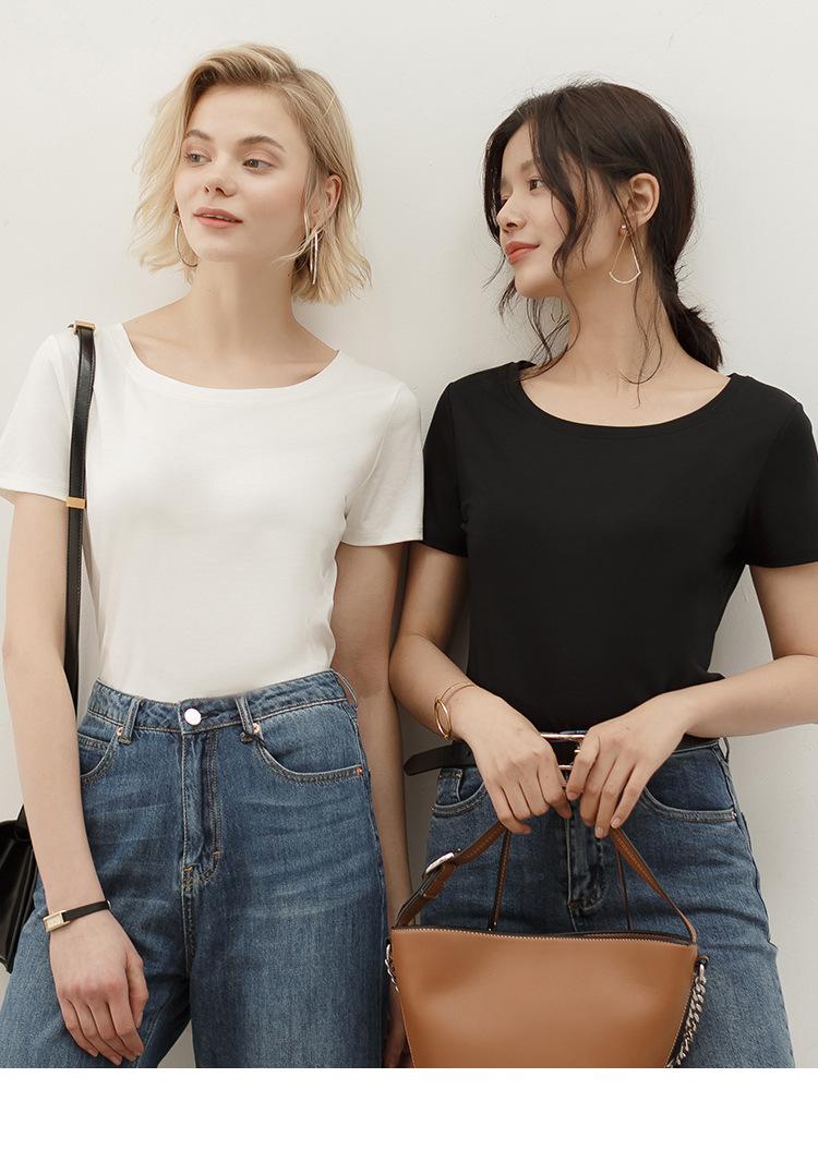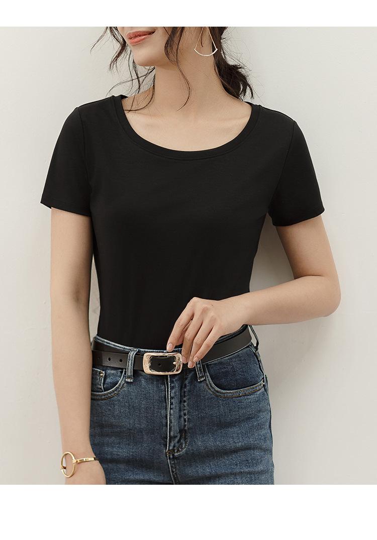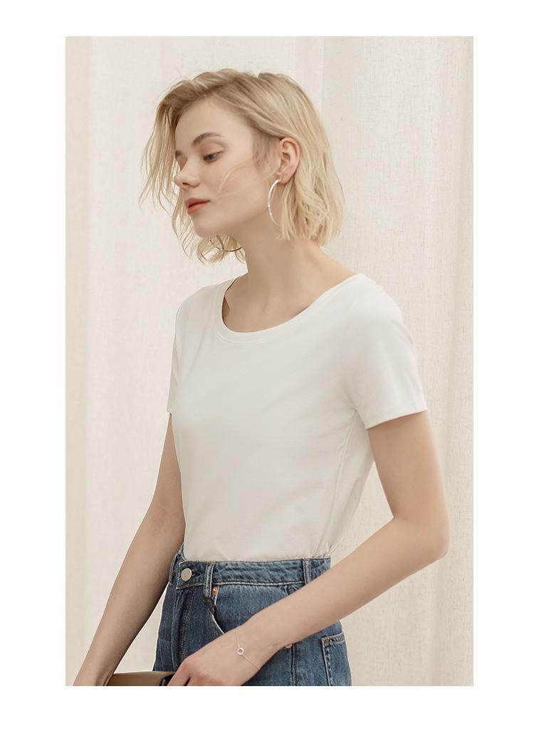 Camiseta de verano de estilo europeo para mujer, de algodón mercerizado, de manga corta y cuello redondo, K1055