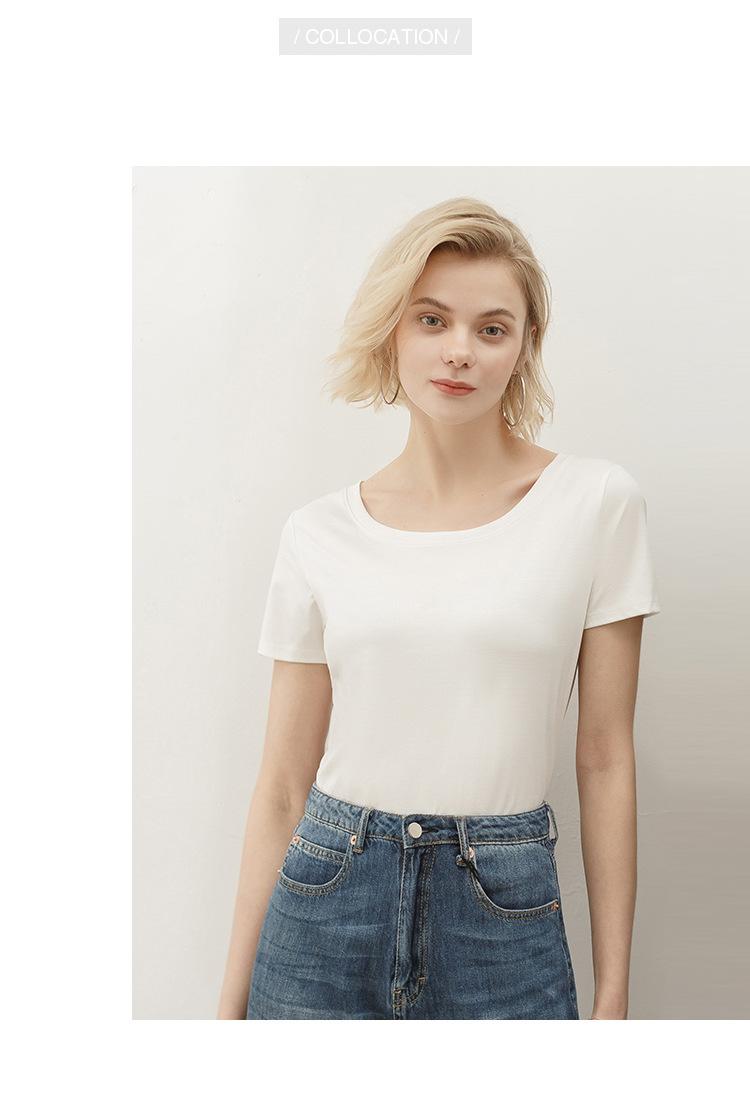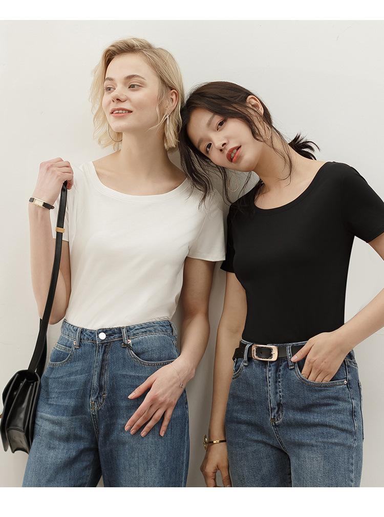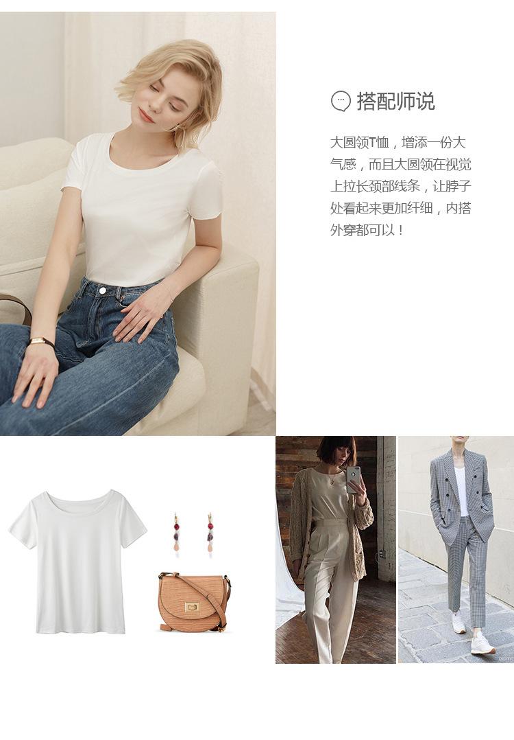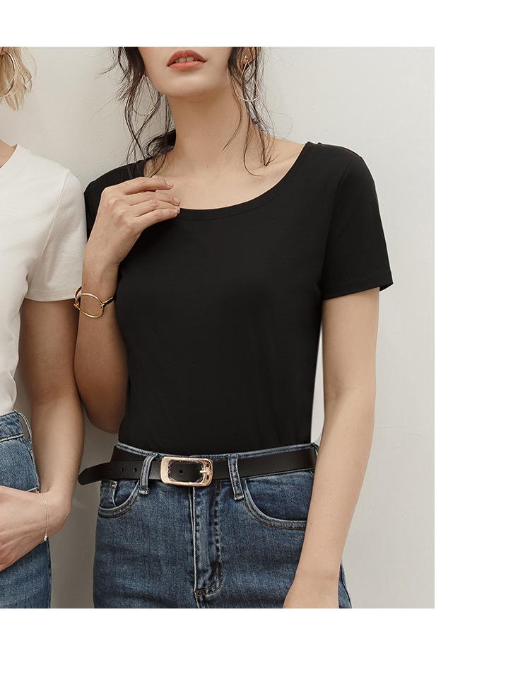 Camiseta de verano de estilo europeo para mujer, de algodón mercerizado, de manga corta y cuello redondo, K1055