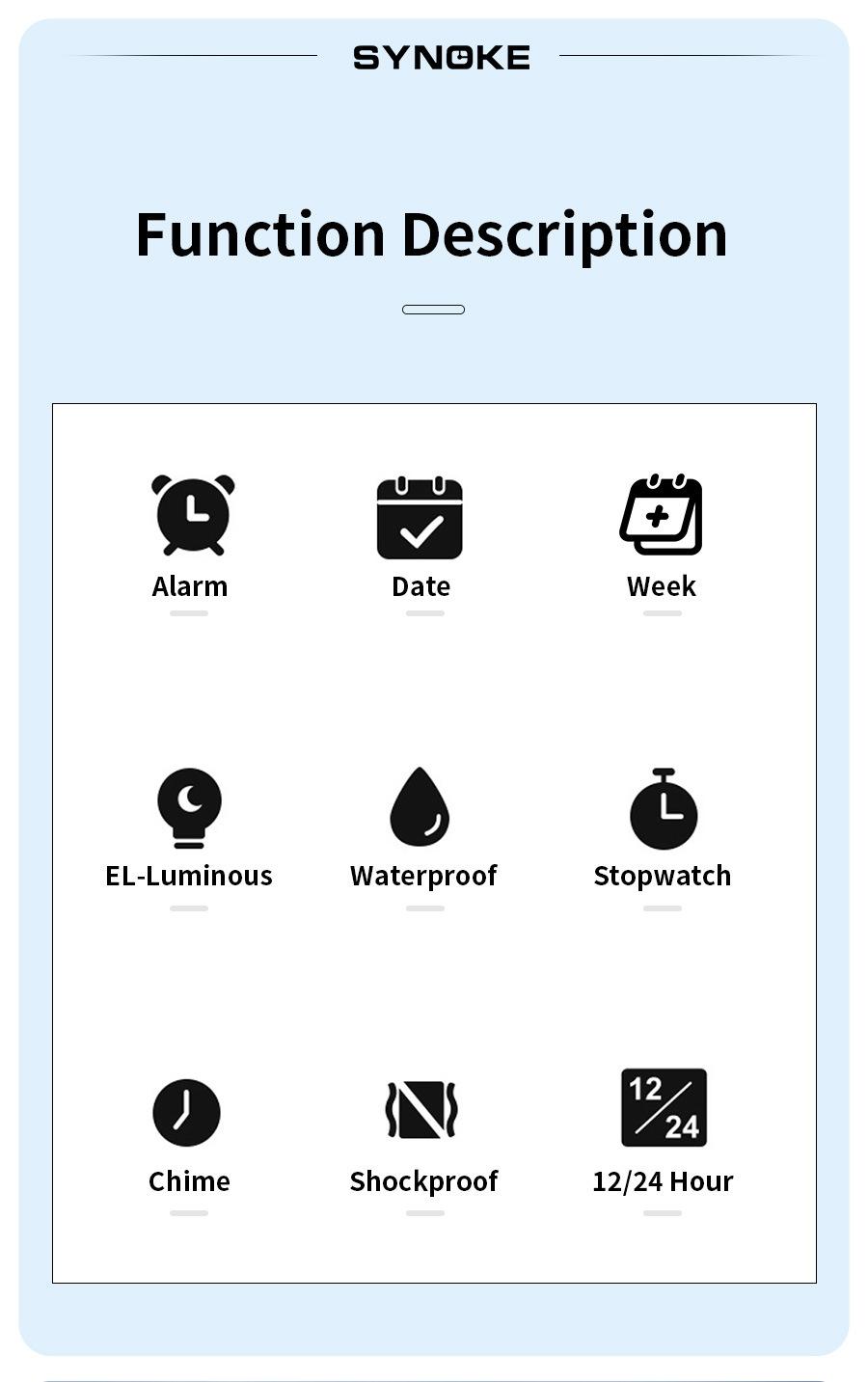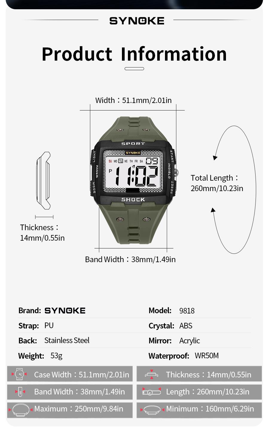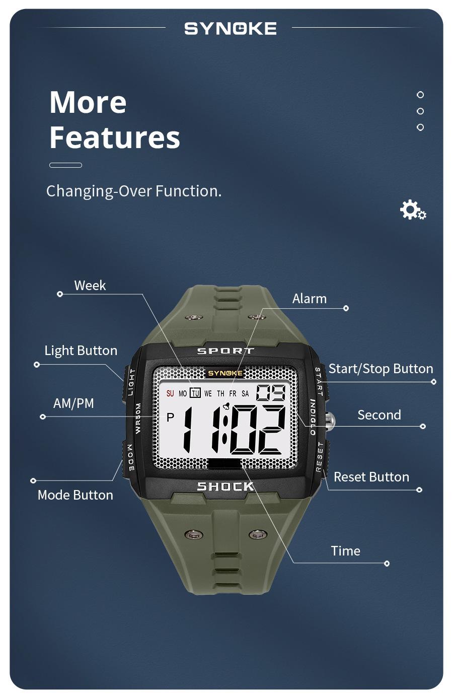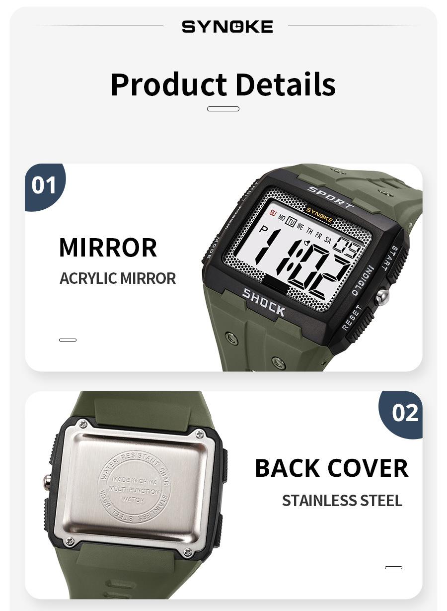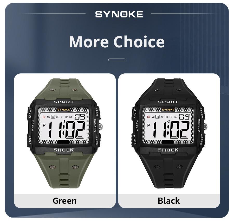 Productos de Fábrica Synoke Nuevo Reloj Digital Deportivo para Hombre Impermeable Luminoso Pantalla Grande Cuadrado Exterior Militar Reloj Reloj Estudiante