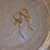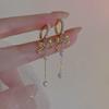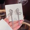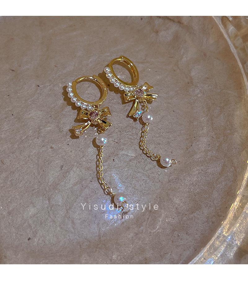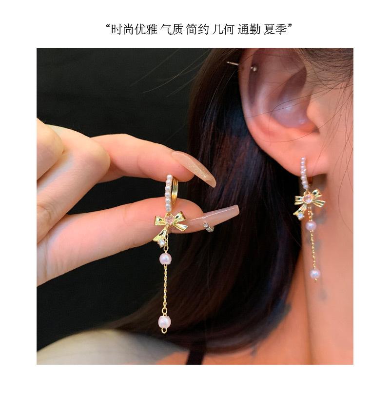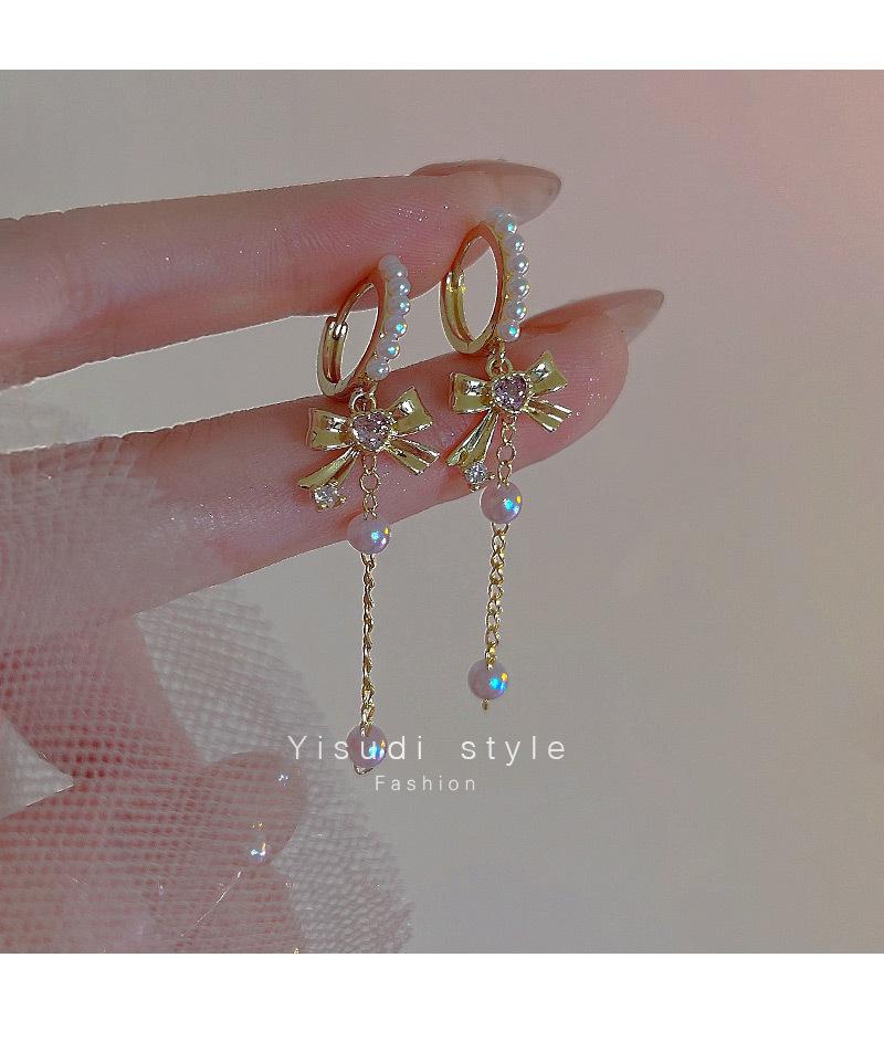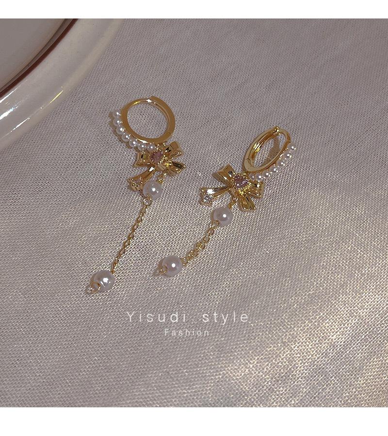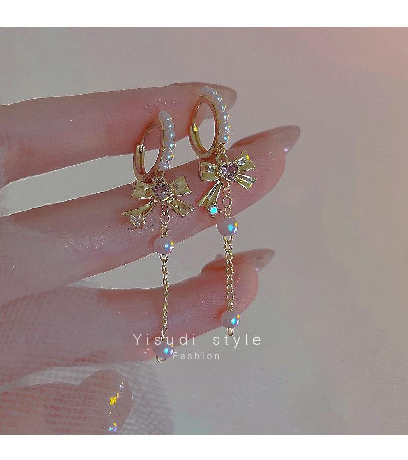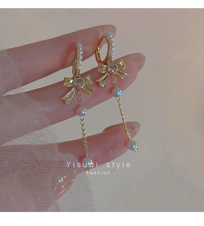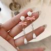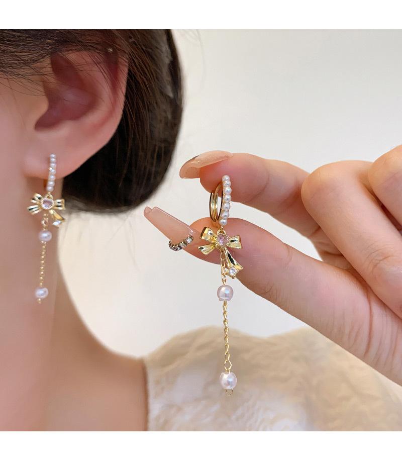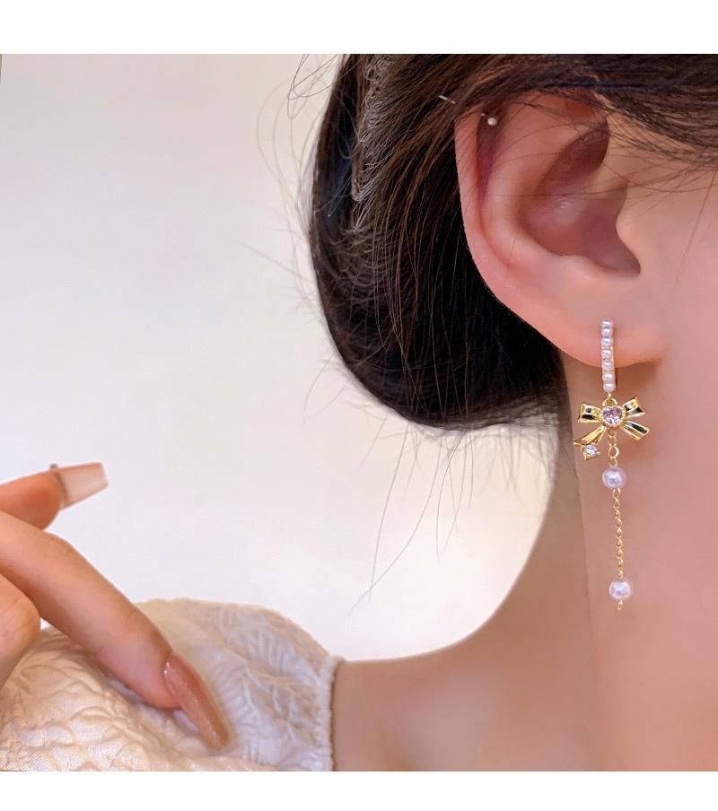 Pendientes con borlas de perlas y lazo para mujer, diseño avanzado, aretes de circonitas con forma de corazón, joyería retro europea y americana de orejas largas.