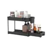 Estante de Almacenamiento de Piso de Doble Capa Debajo del Fregadero, Gabinete Doméstico Cocina Estante de Almacenamiento Multifuncional para Especias, Estante de Almacenamiento Deslizante