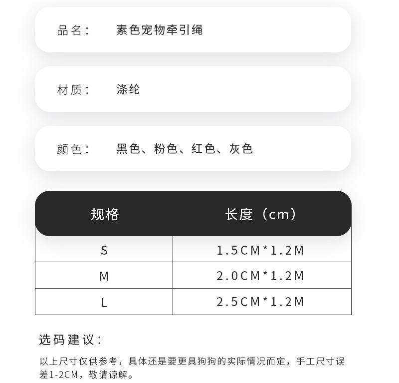 Pink traction rope, Gray traction rope, Black traction rope, Red traction rope, Pink collar, Gray collar, Blac...