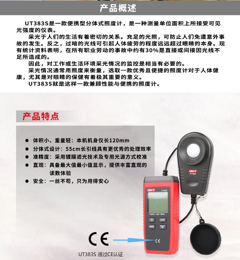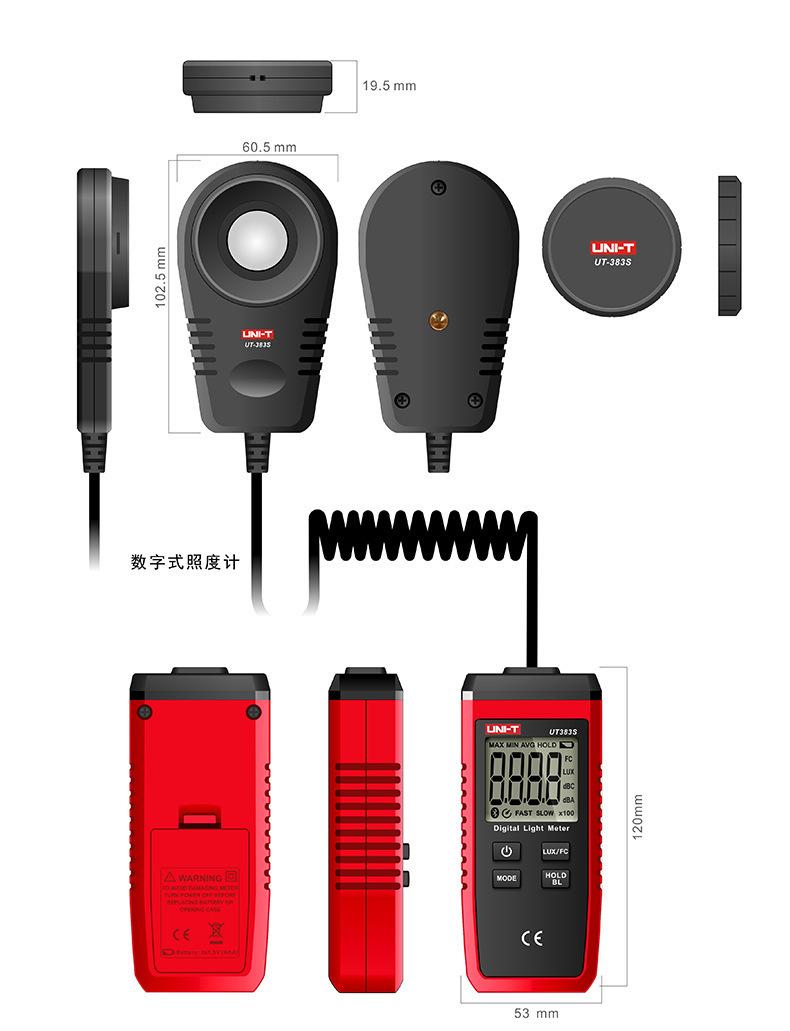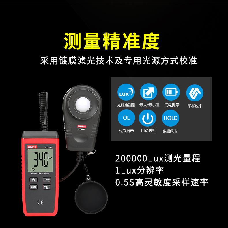 Iluminómetro dividido Unide UT383S, comprobador de iluminancia de plantas, medidor de brillo de alta precisión de 200000 LUX