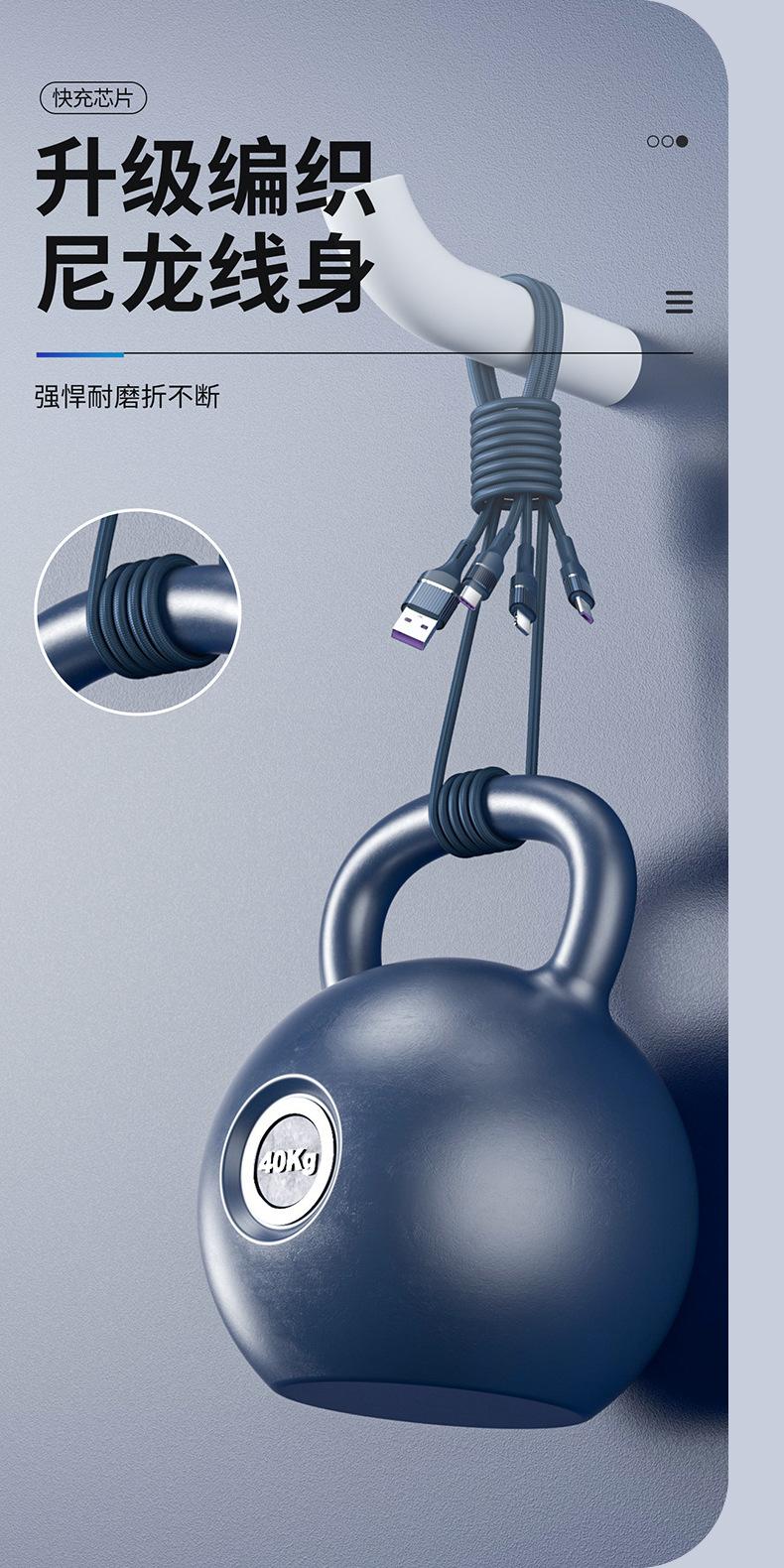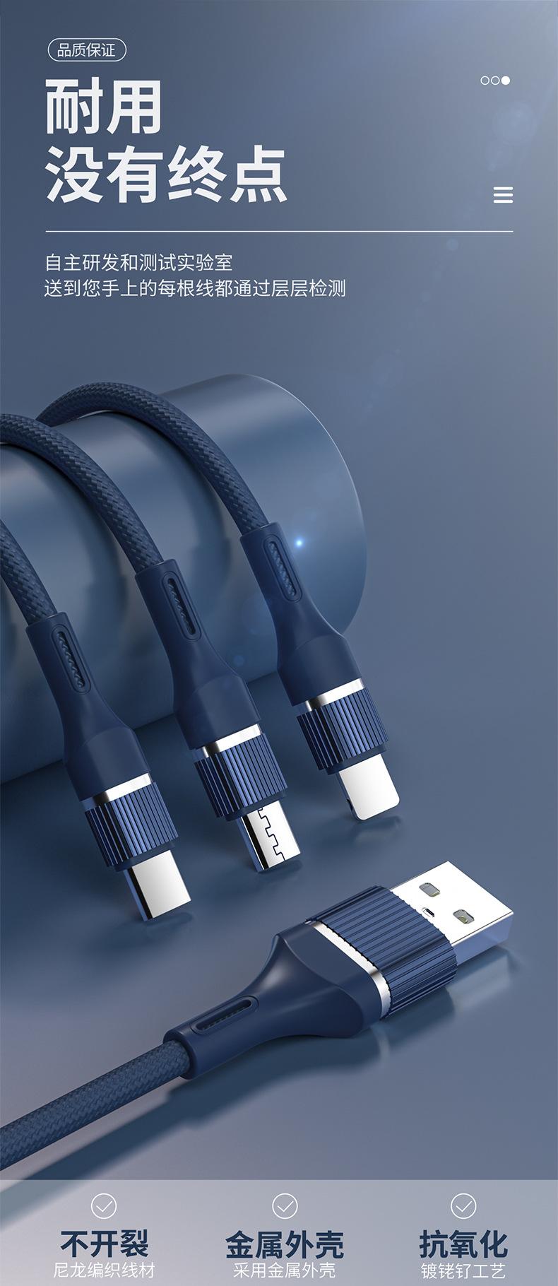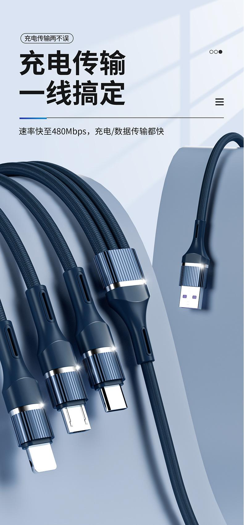 | Soporte de almacenamiento multifuncional, carga rápida, cable de carga de uno a tres, logotipo de regalo, cable de datos retráctil personalizado, tres en uno |