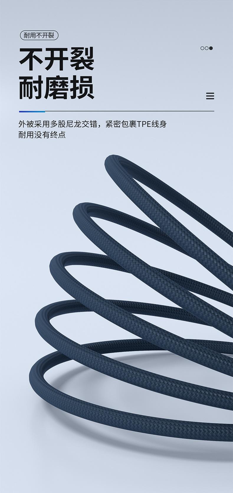 Ventajas del producto: Cable trenzado, suave y duradero, no se anuda fácilmente, tacto delicado, textura de alta gama, lo que resuelve el problema de llevar múltiples cables al salir. Básicamente un cable, universal para los modelos principales del mercado.