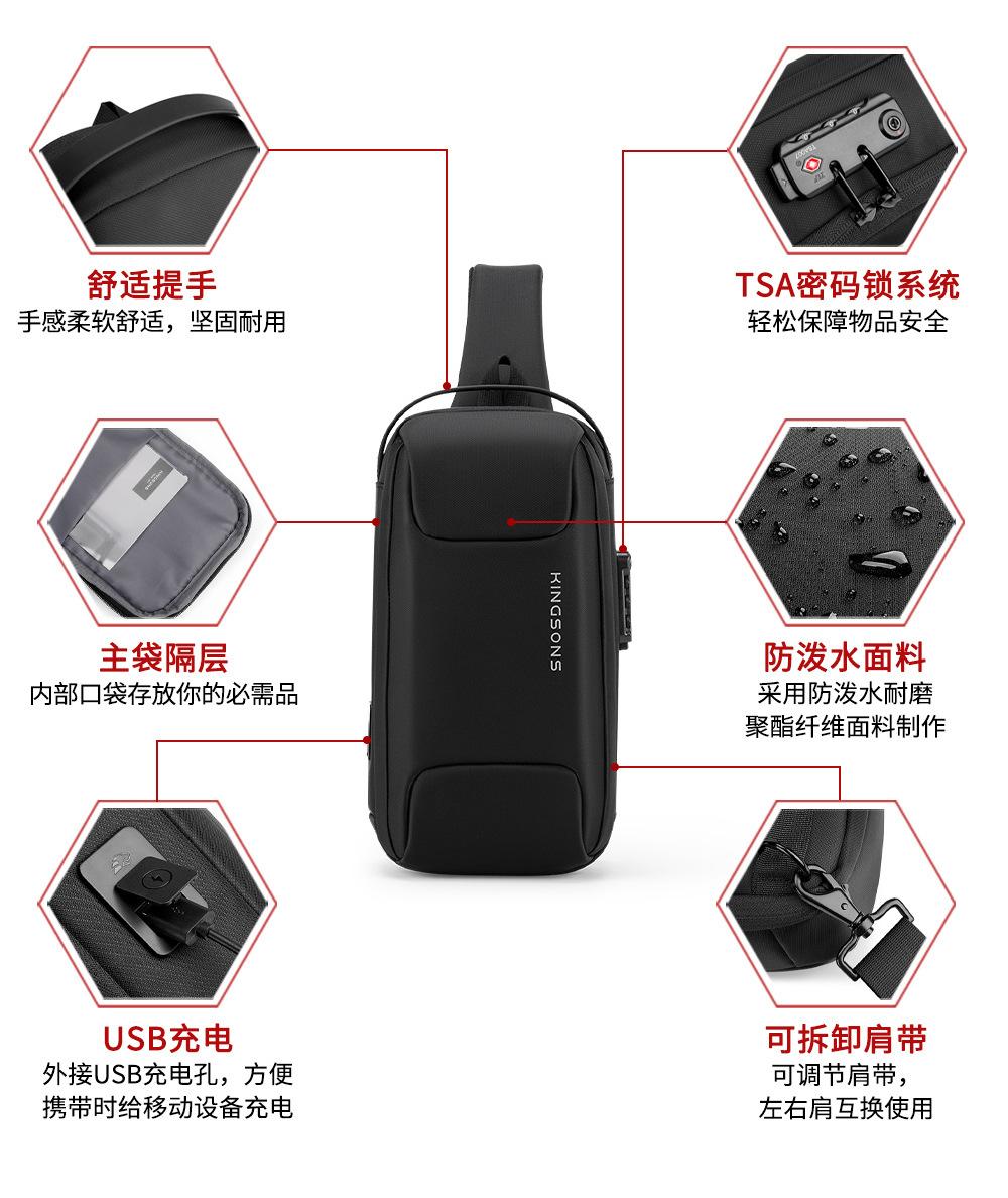 Nuevo bolso de mensajero de gran capacidad para exteriores, bolso de pecho para hombre con diseño transfronterizo, moderno y sencillo, bolso de hombro con carga USB