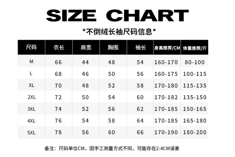 M, L, XL, 2XL, 3XL, 4XL, 5XL