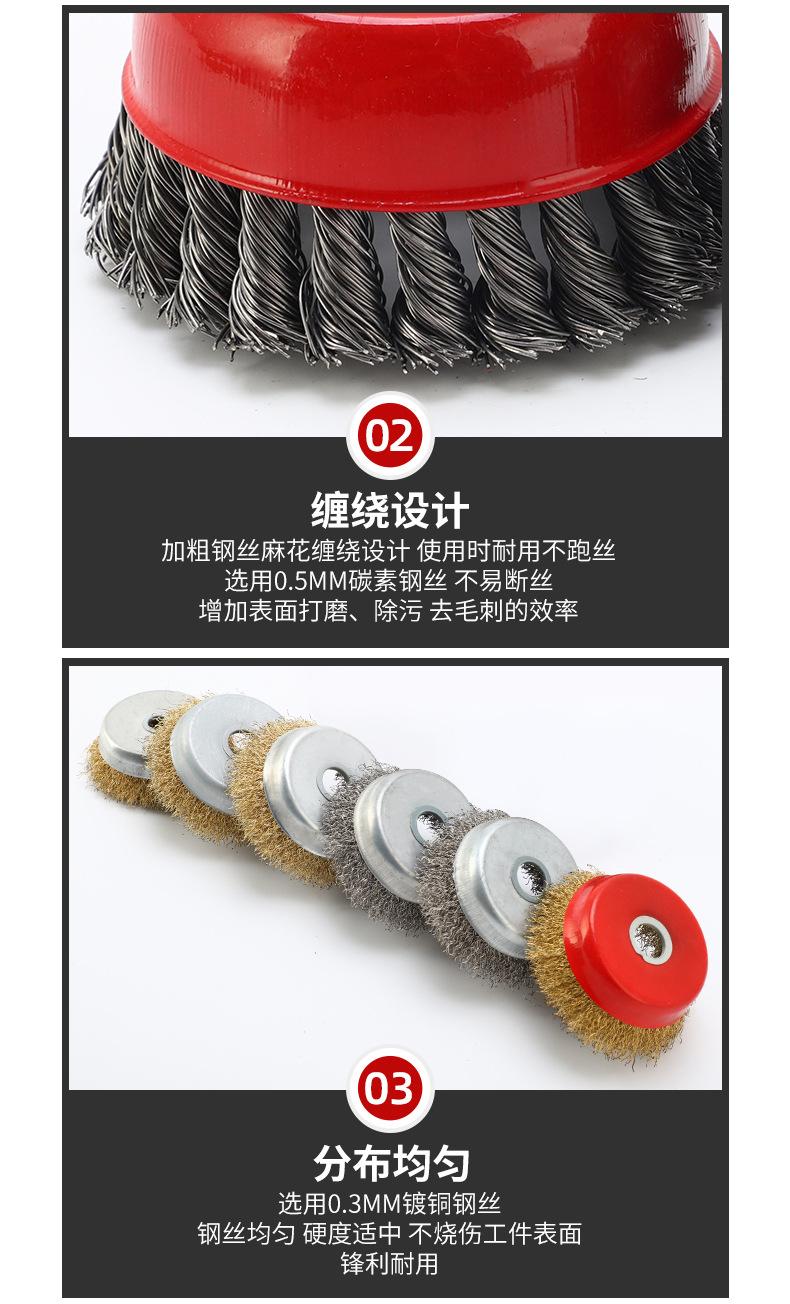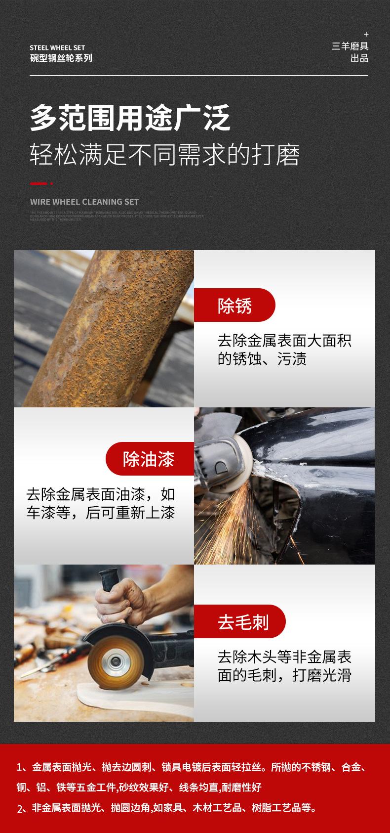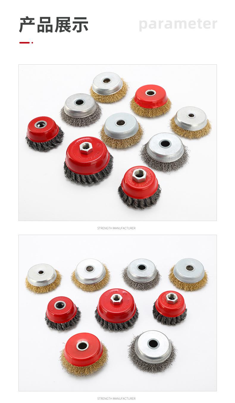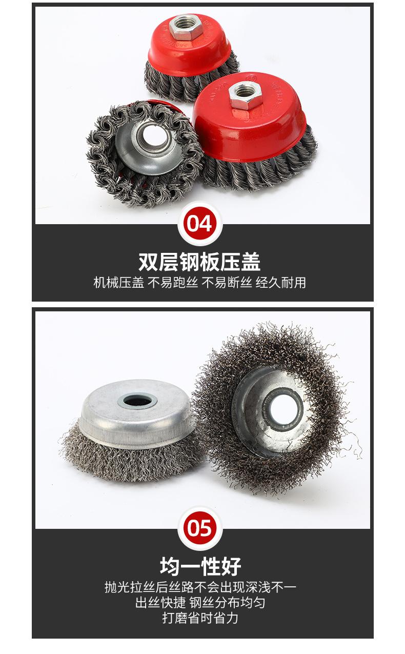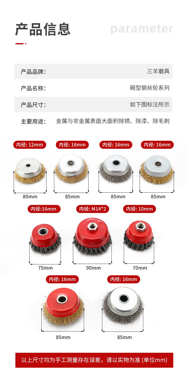 Venta al por mayor de herramientas de pulido Sanyang, rueda de alambre tipo cuenco, cepillo de alambre para eliminar óxido, rueda de alambre de acero inoxidable, alambre trenzado, cepillo de cuenco de alambre para pulir