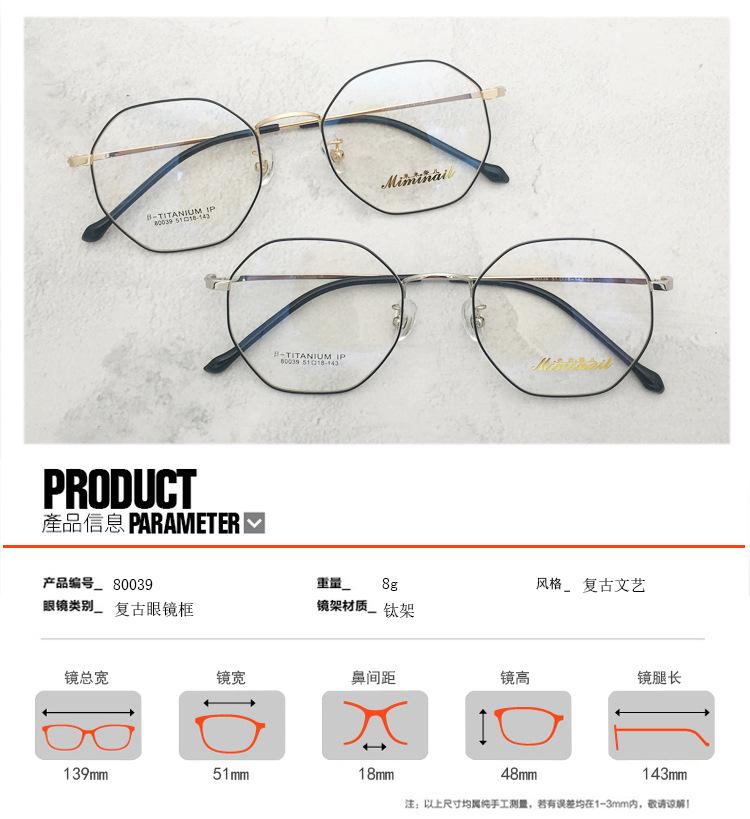 Nuevo armazón retro de titanio de polígono pequeño y montura grande ultraligera para armazón de gafas para hombres y mujeres con armazón de gafas para miopía y luz azul
