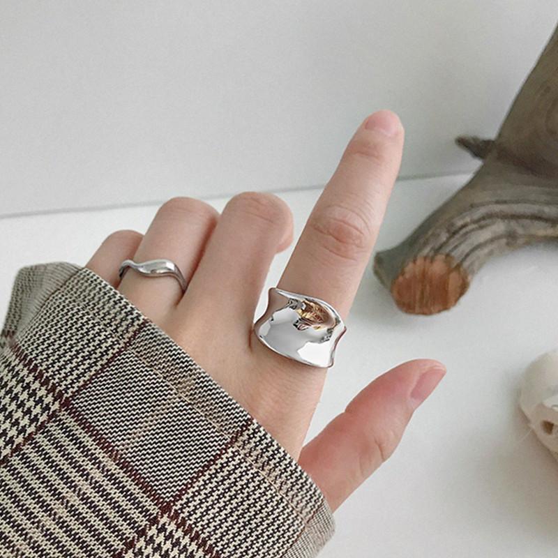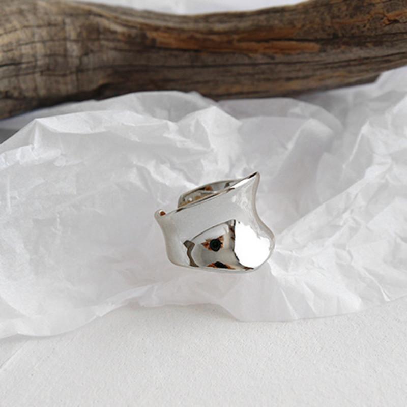 Anillo personalizado de celebridad de Internet en plata de ley S925 con arco irregular exagerado, cóncavo y cara ancha para mujer, anillo abierto para dedo.