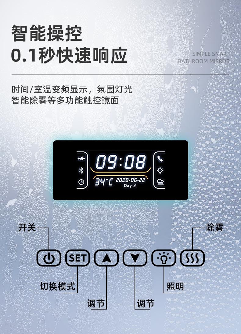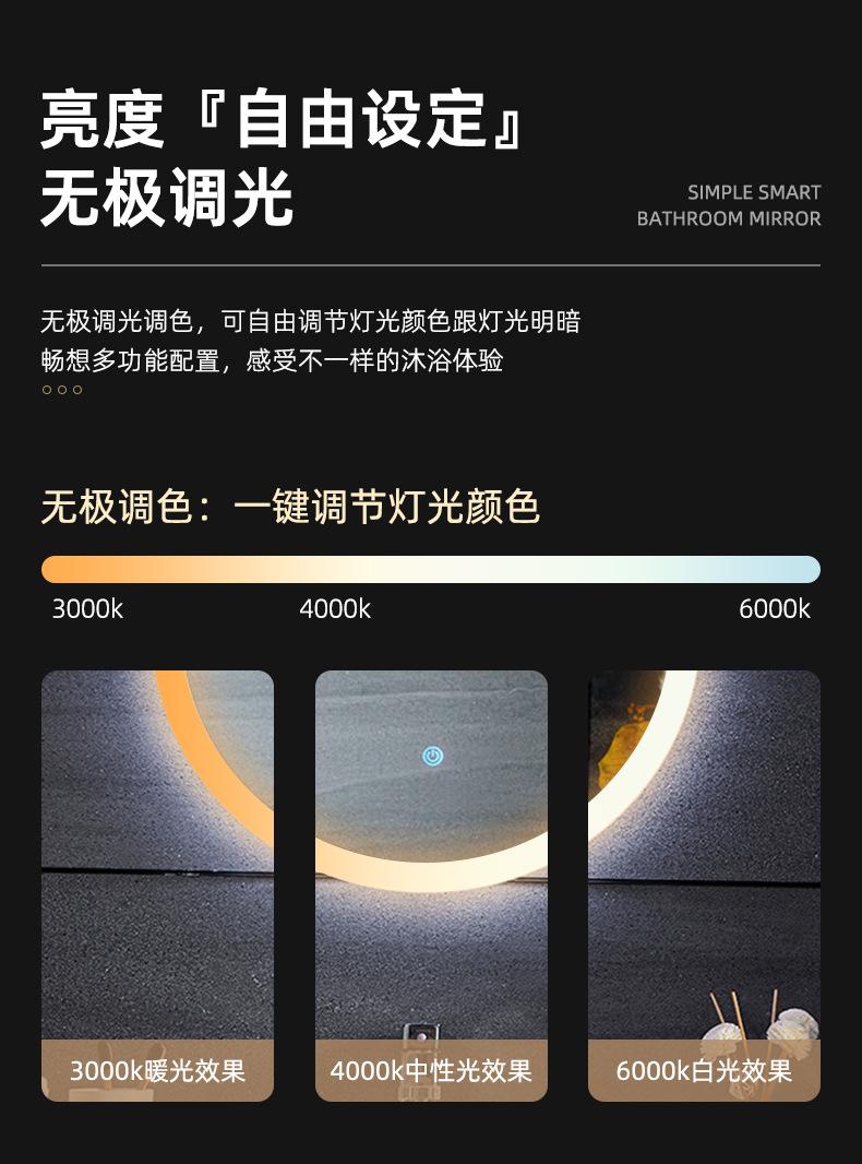 Espejo Inteligente de Baño de Hotel Transfronterizo Espejo de Baño Pantalla Táctil Luz Espejo de Maquillaje Espejo de Tocador Inodoro Espejo Redondo