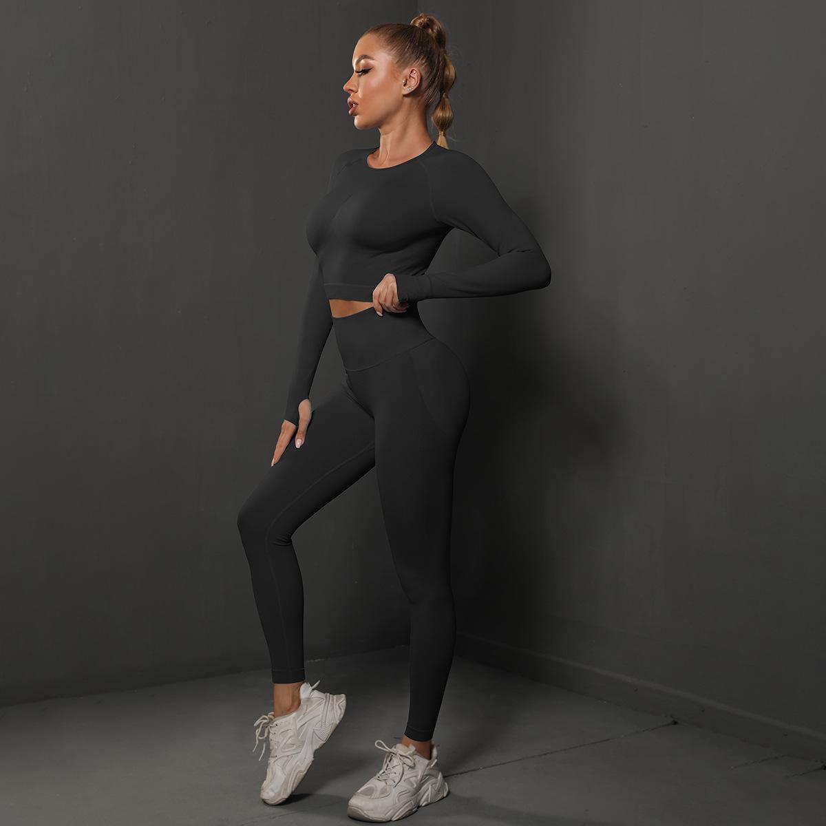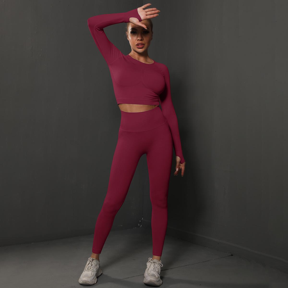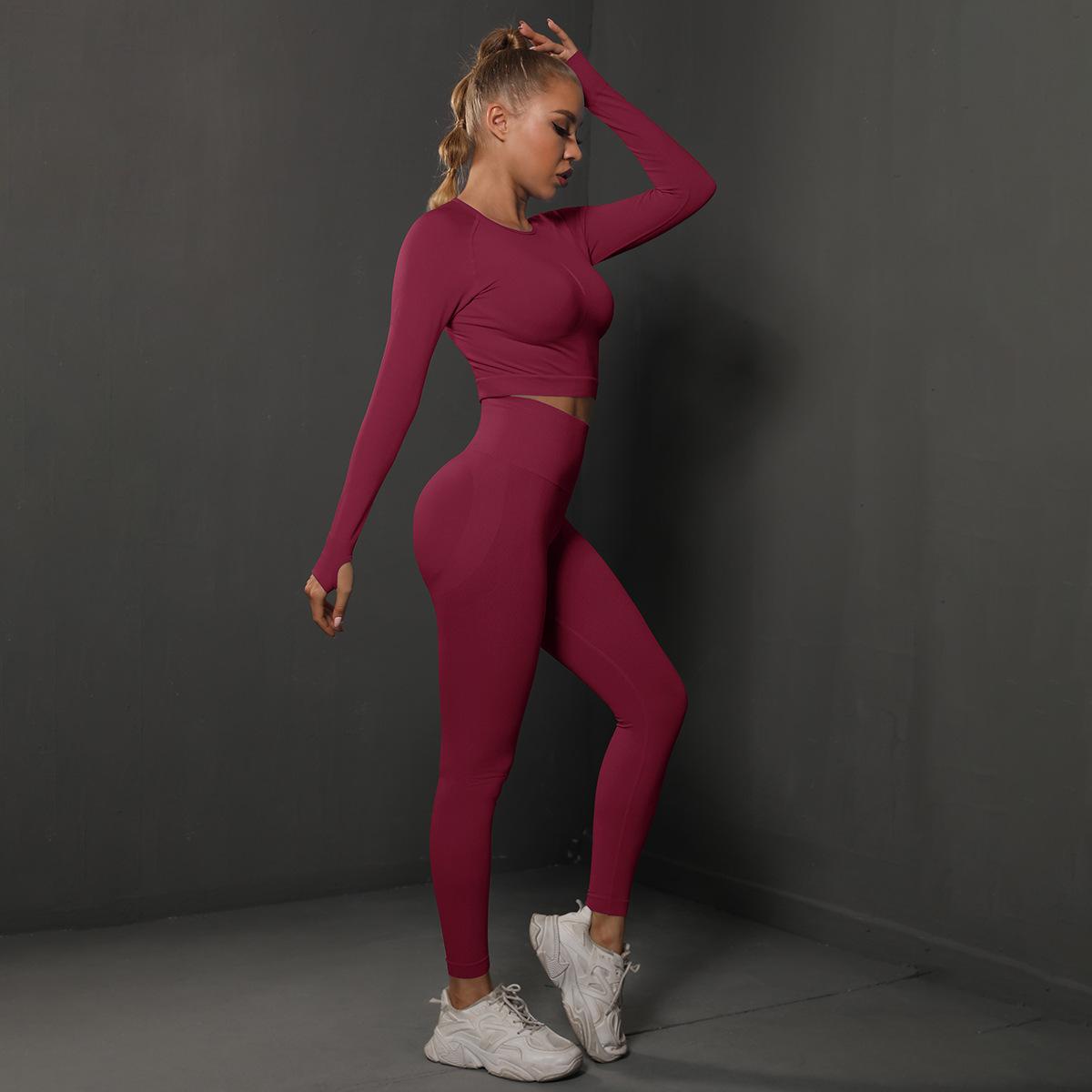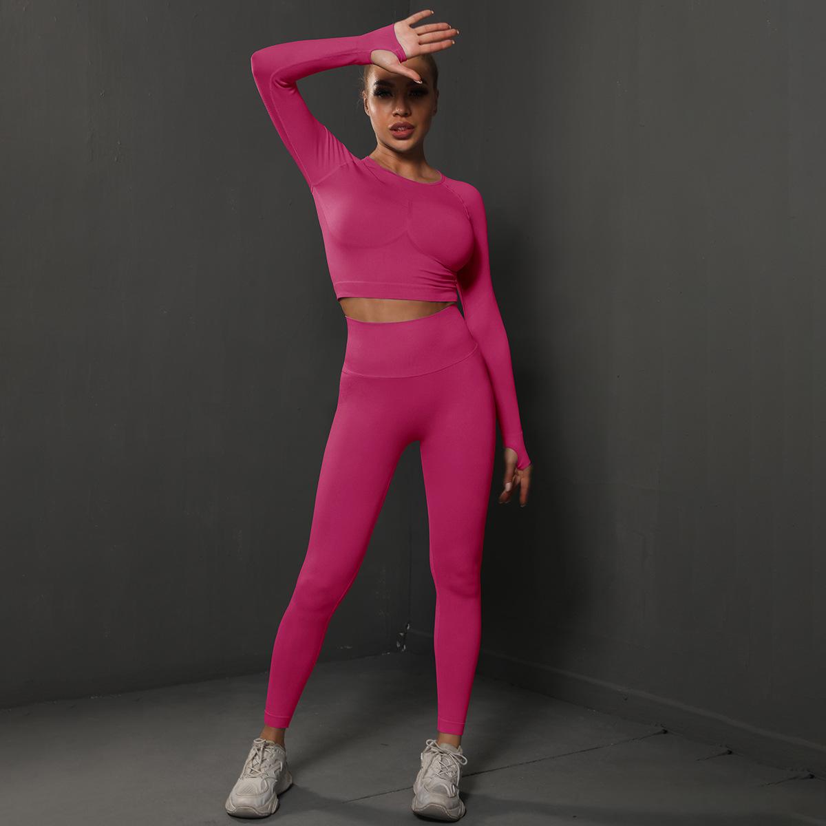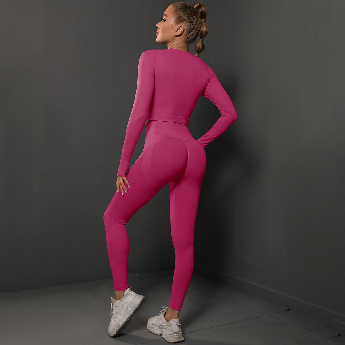 Conjunto de Ropa de Yoga de Melocotón Sin Costuras Europeo y Americano Transfronterizo para Levantar Glúteos Ajustado al Cuerpo para Deportes, Correr, Fitness, Conjunto de Dos Piezas para Mujer