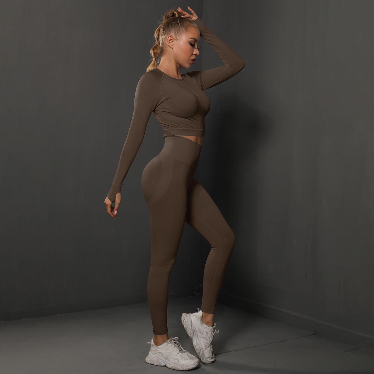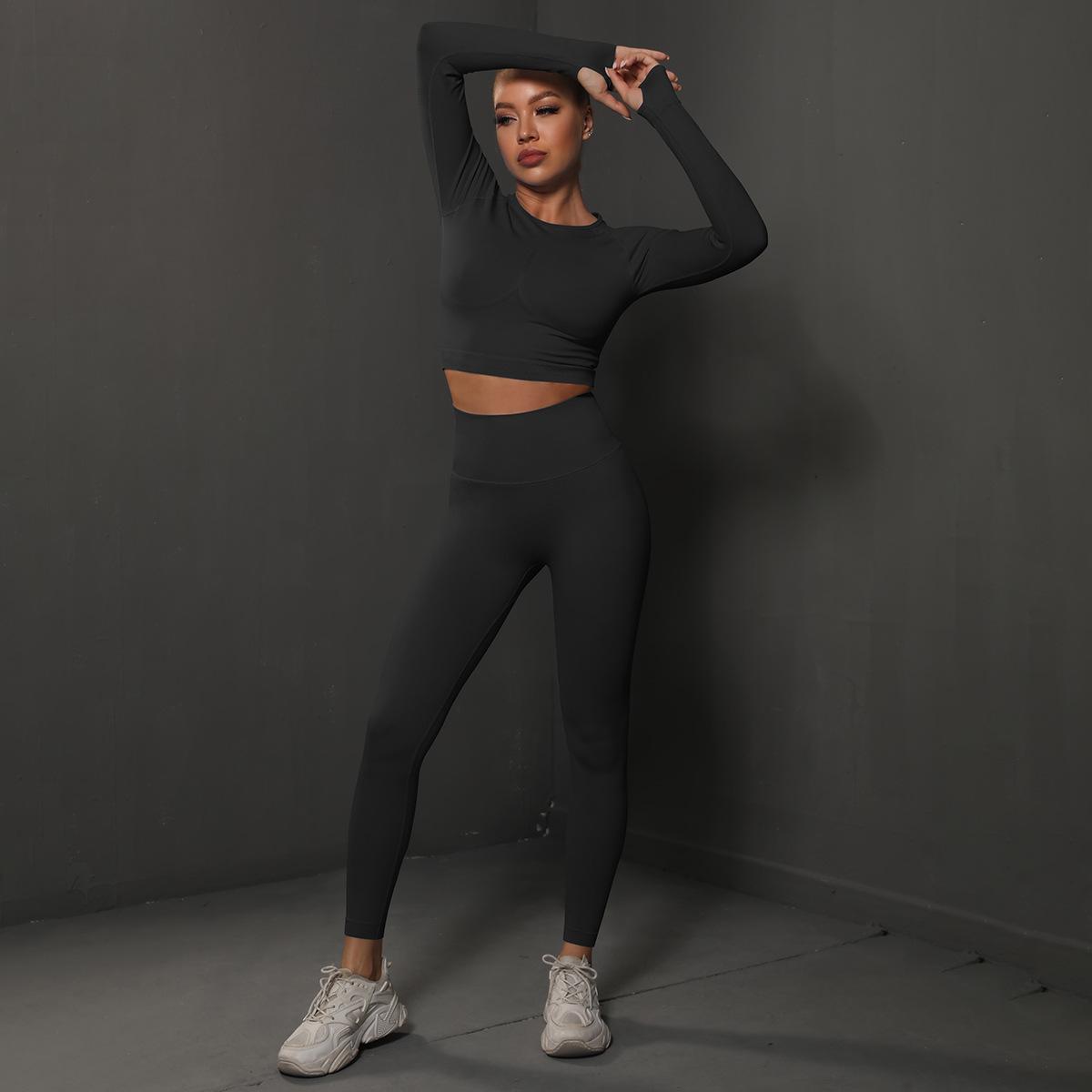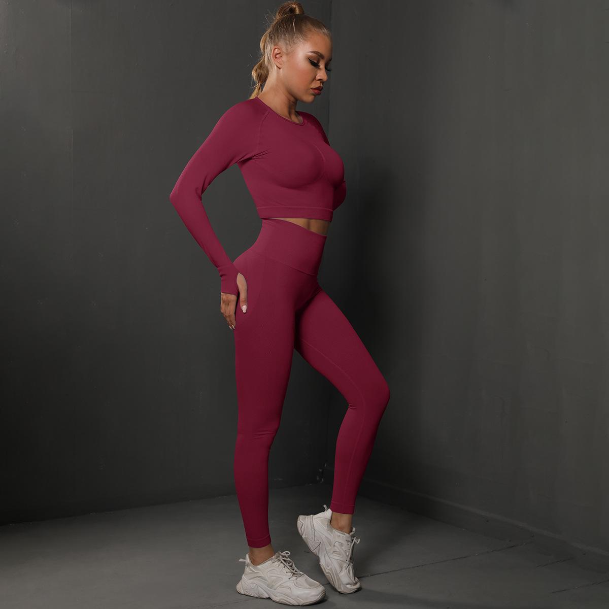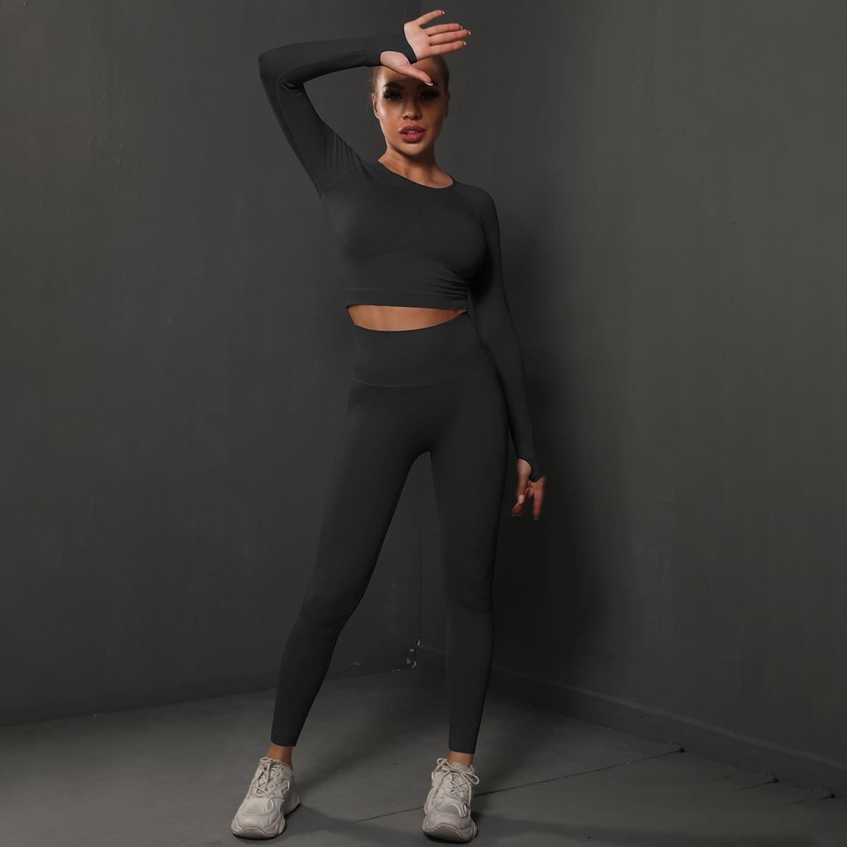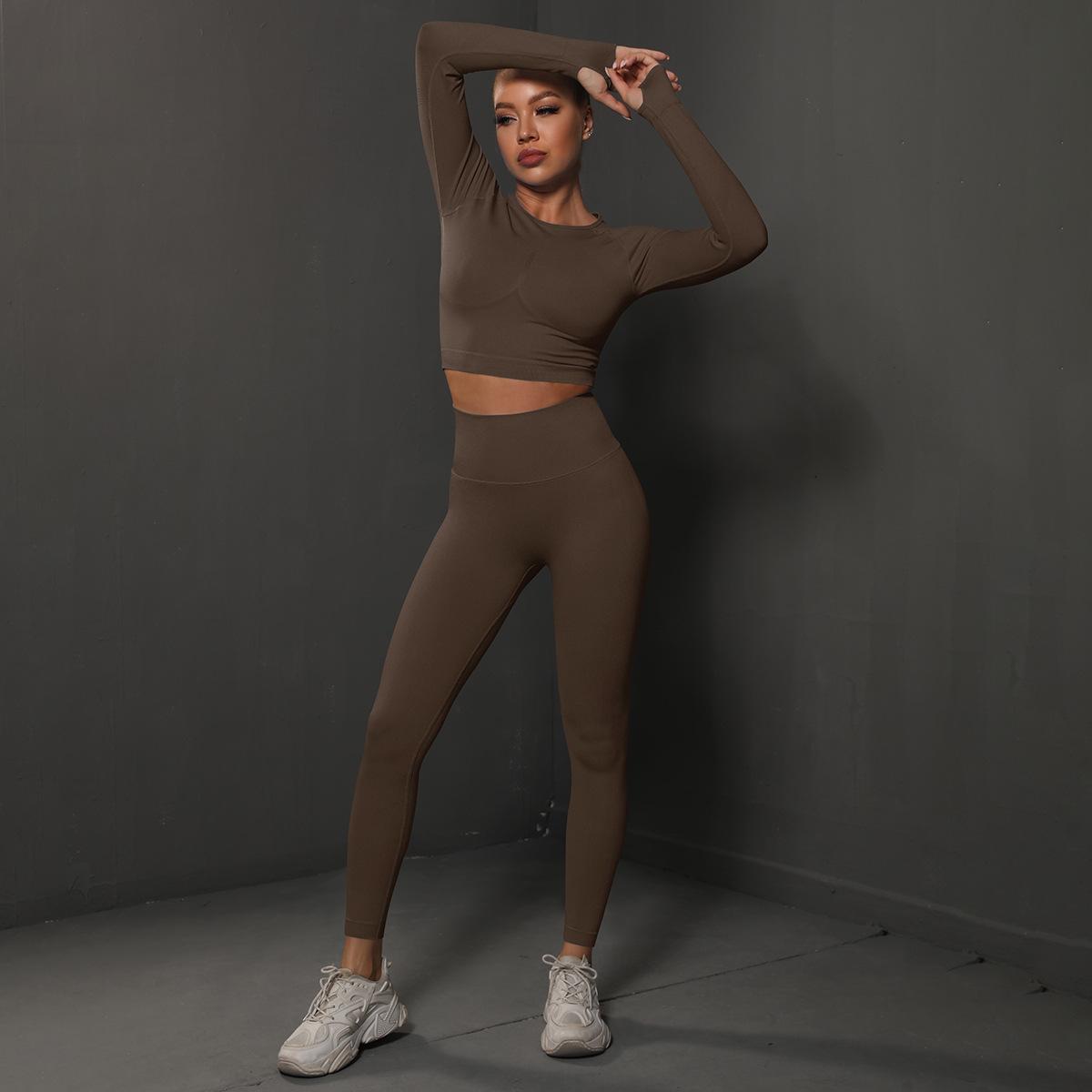 Conjunto de Ropa de Yoga de Melocotón Sin Costuras Europeo y Americano Transfronterizo para Levantar Glúteos Ajustado al Cuerpo para Deportes, Correr, Fitness, Conjunto de Dos Piezas para Mujer
