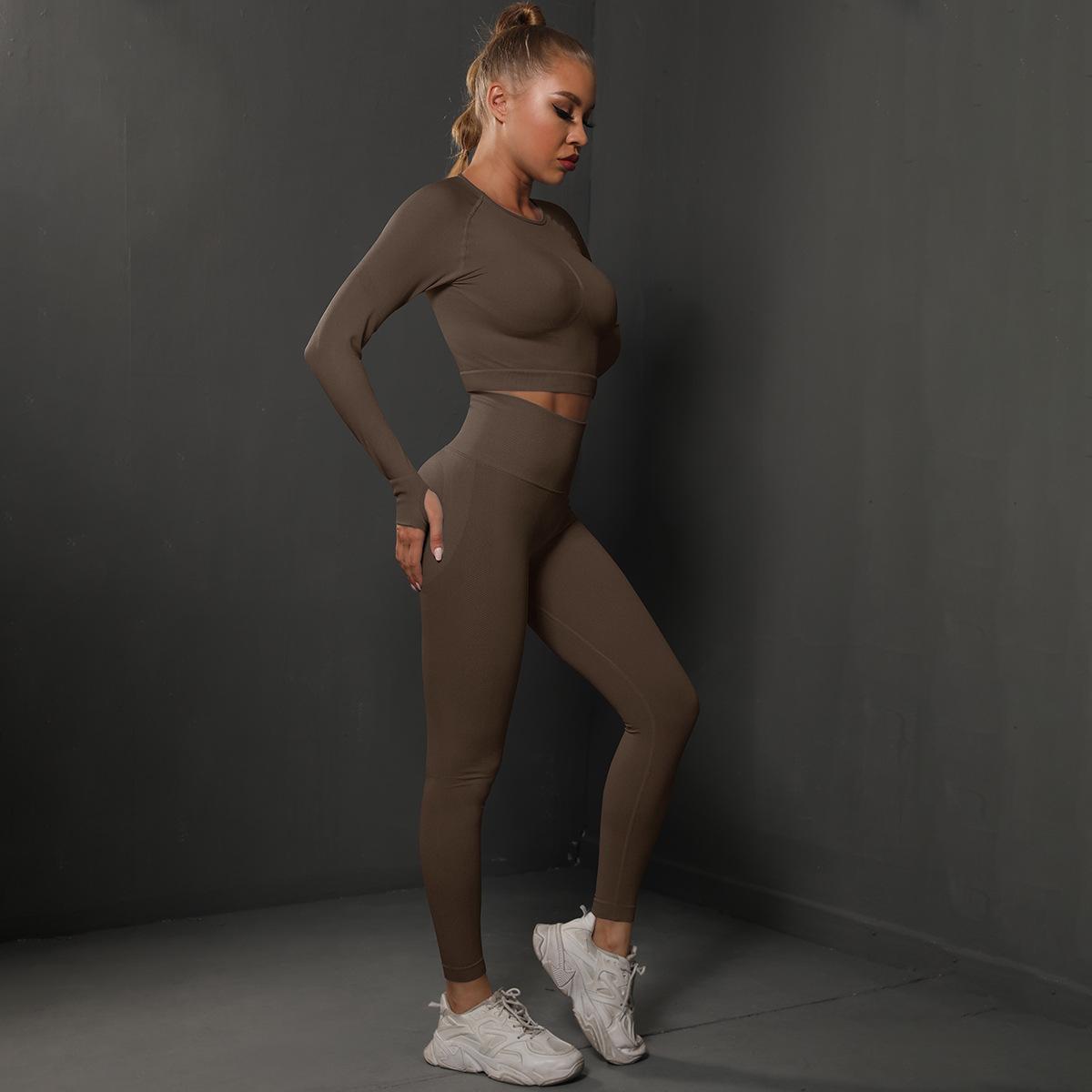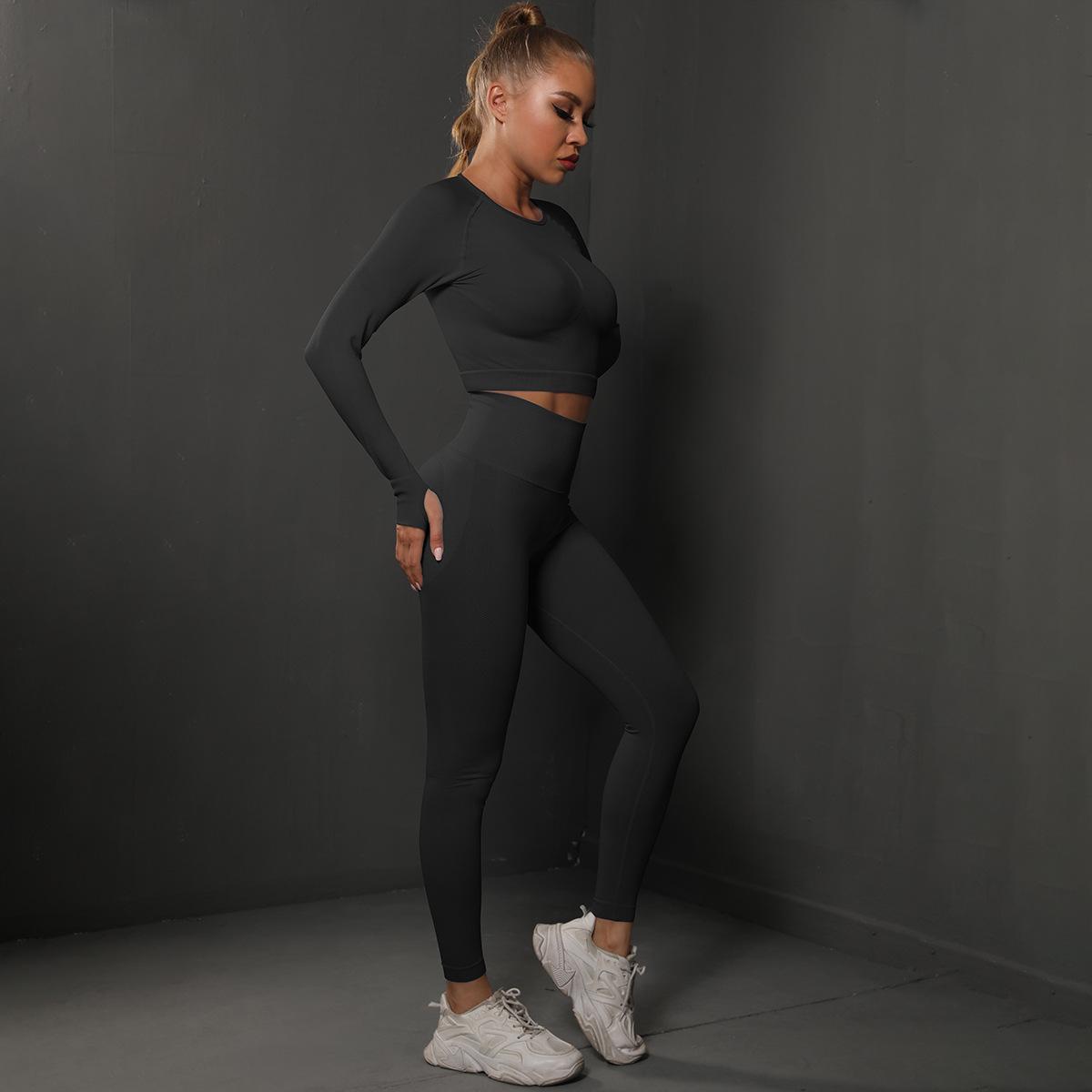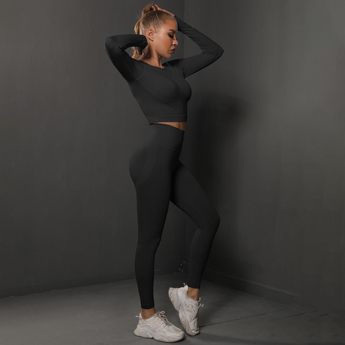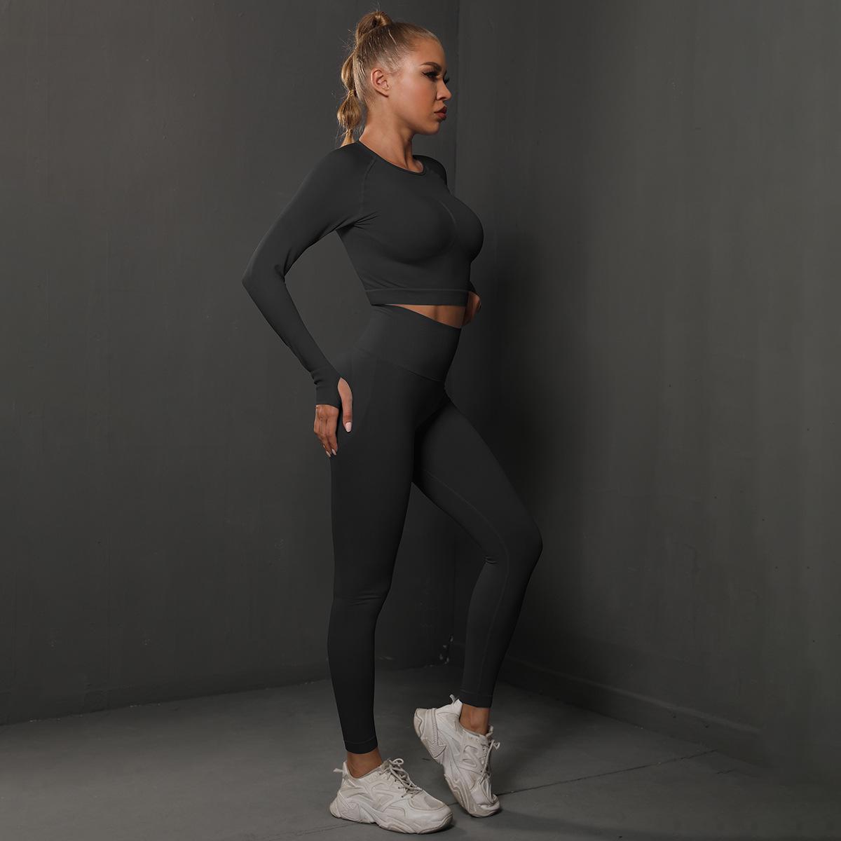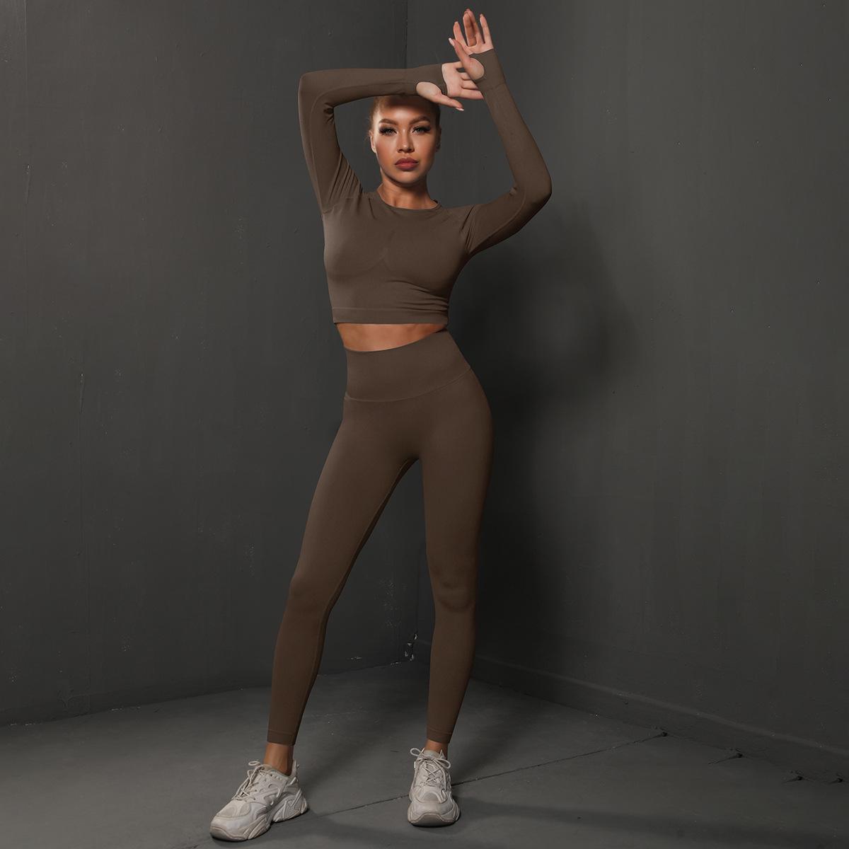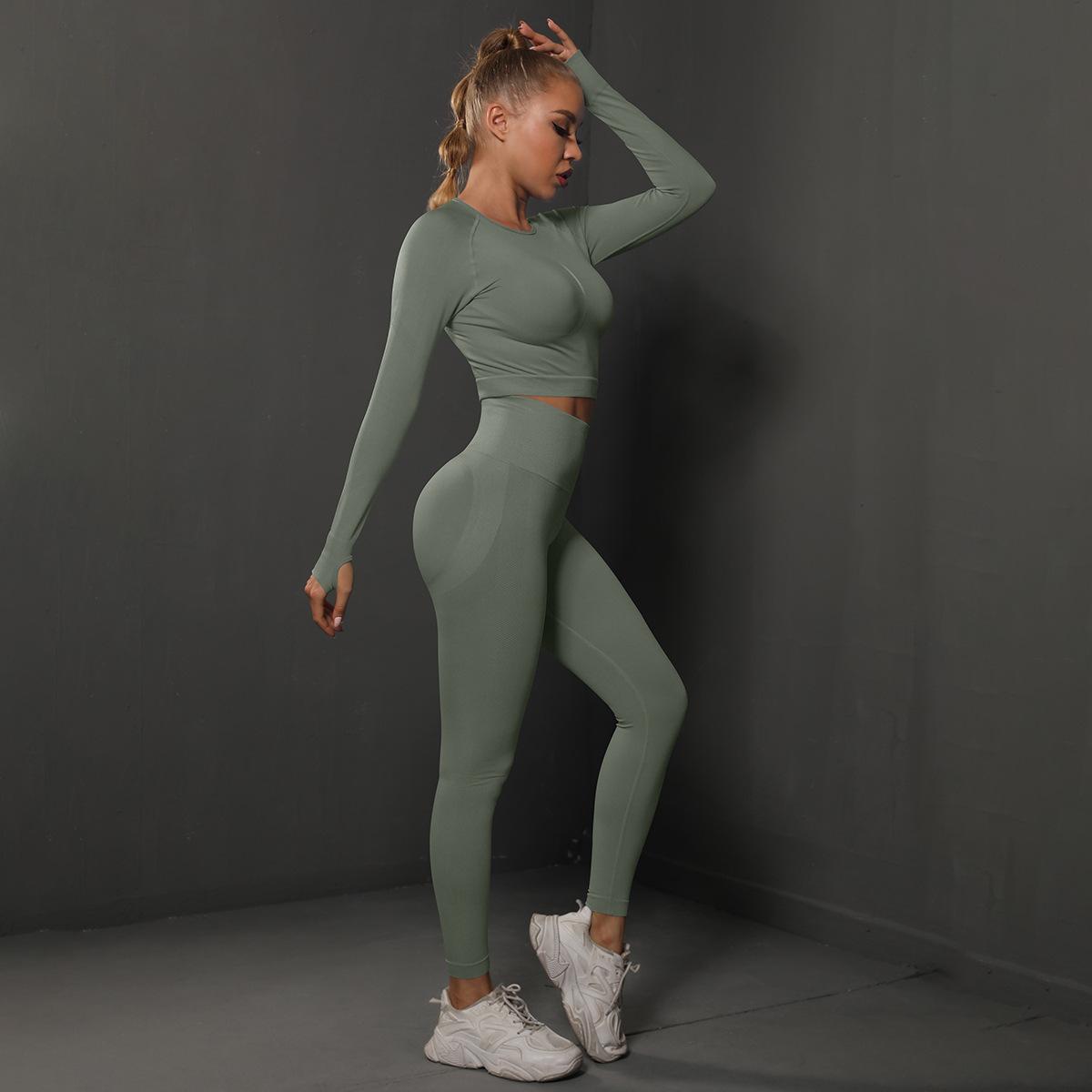 Conjunto de Ropa de Yoga de Melocotón Sin Costuras Europeo y Americano Transfronterizo para Levantar Glúteos Ajustado al Cuerpo para Deportes, Correr, Fitness, Conjunto de Dos Piezas para Mujer