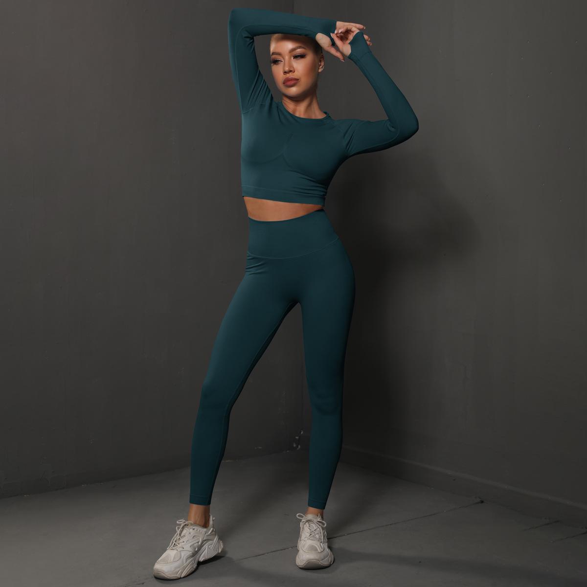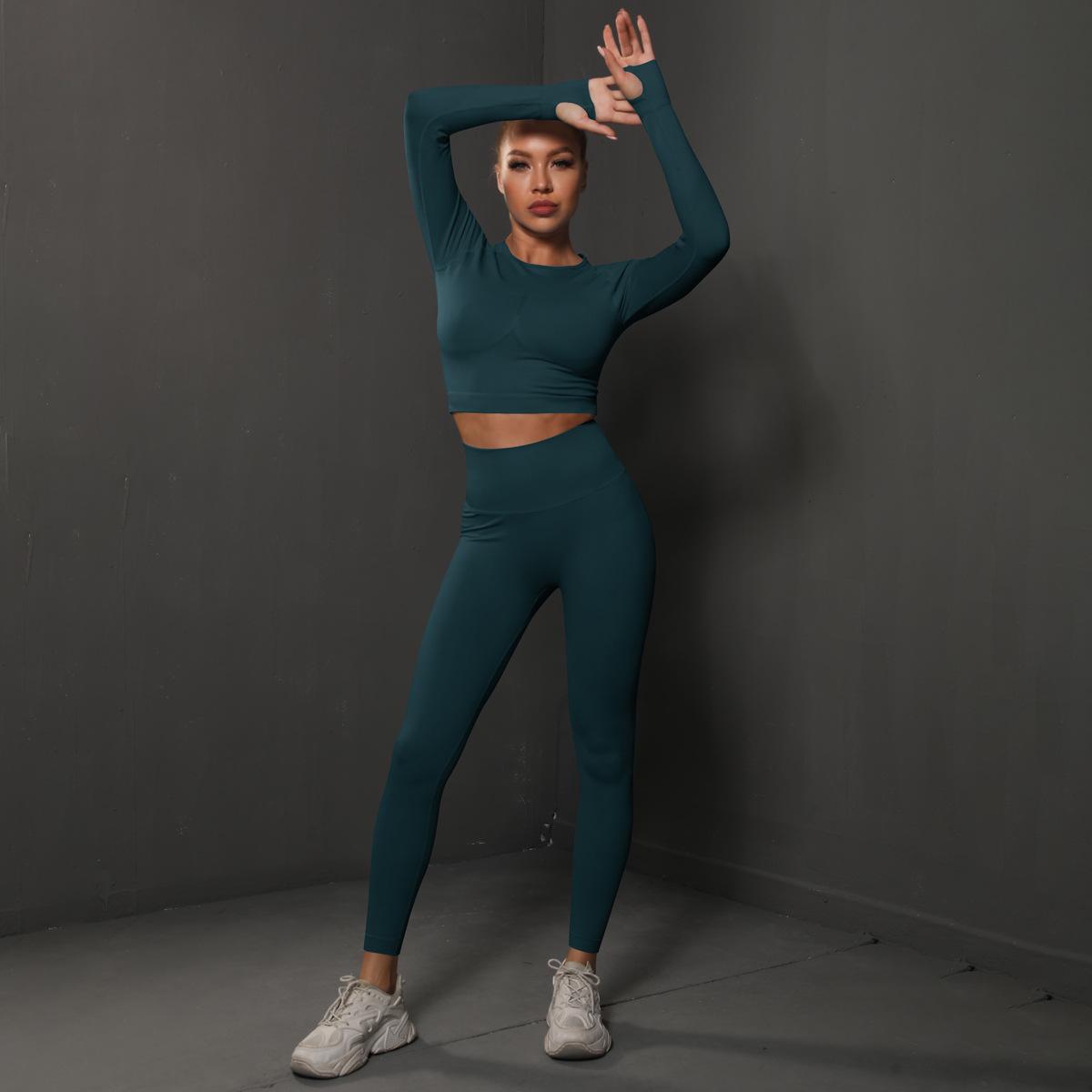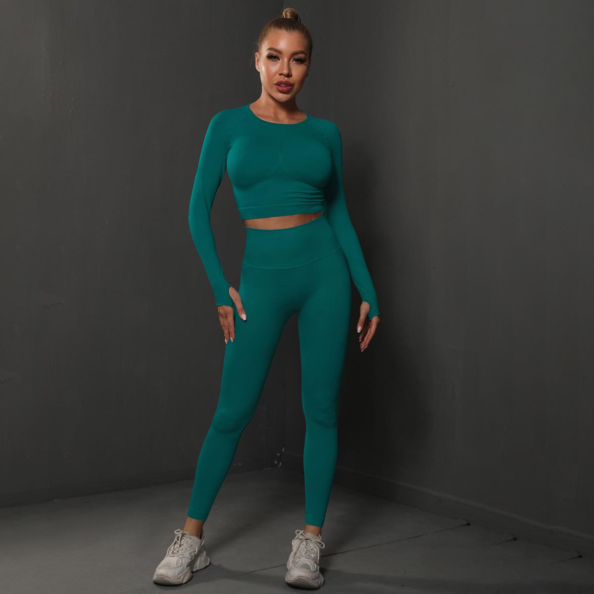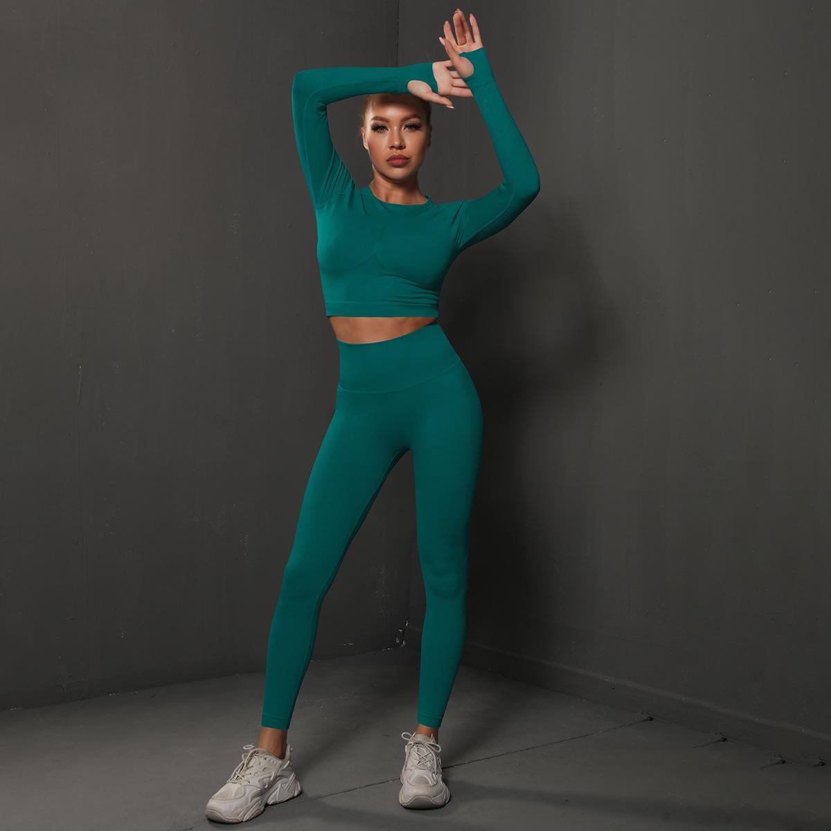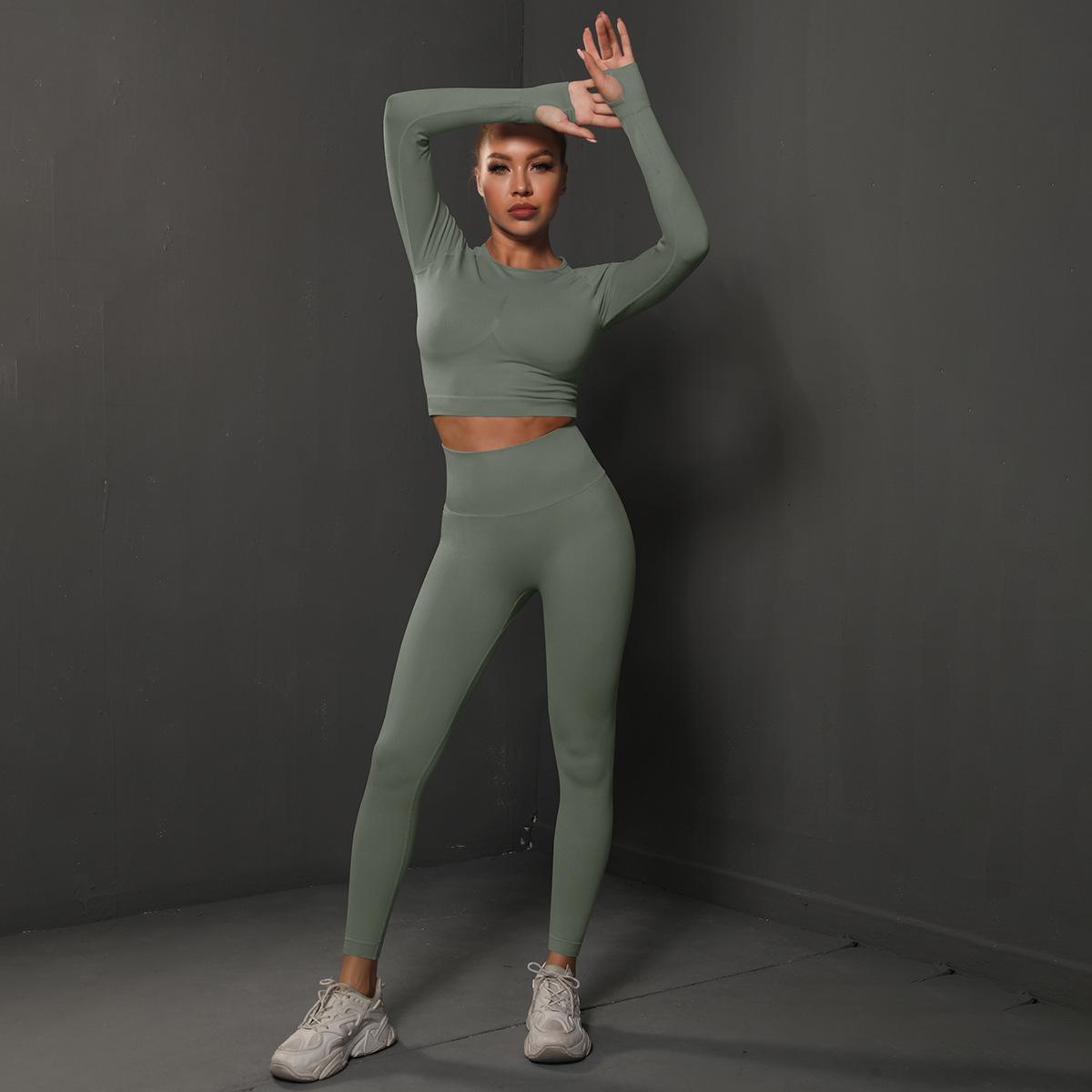 Conjunto de Ropa de Yoga de Melocotón Sin Costuras Europeo y Americano Transfronterizo para Levantar Glúteos Ajustado al Cuerpo para Deportes, Correr, Fitness, Conjunto de Dos Piezas para Mujer
