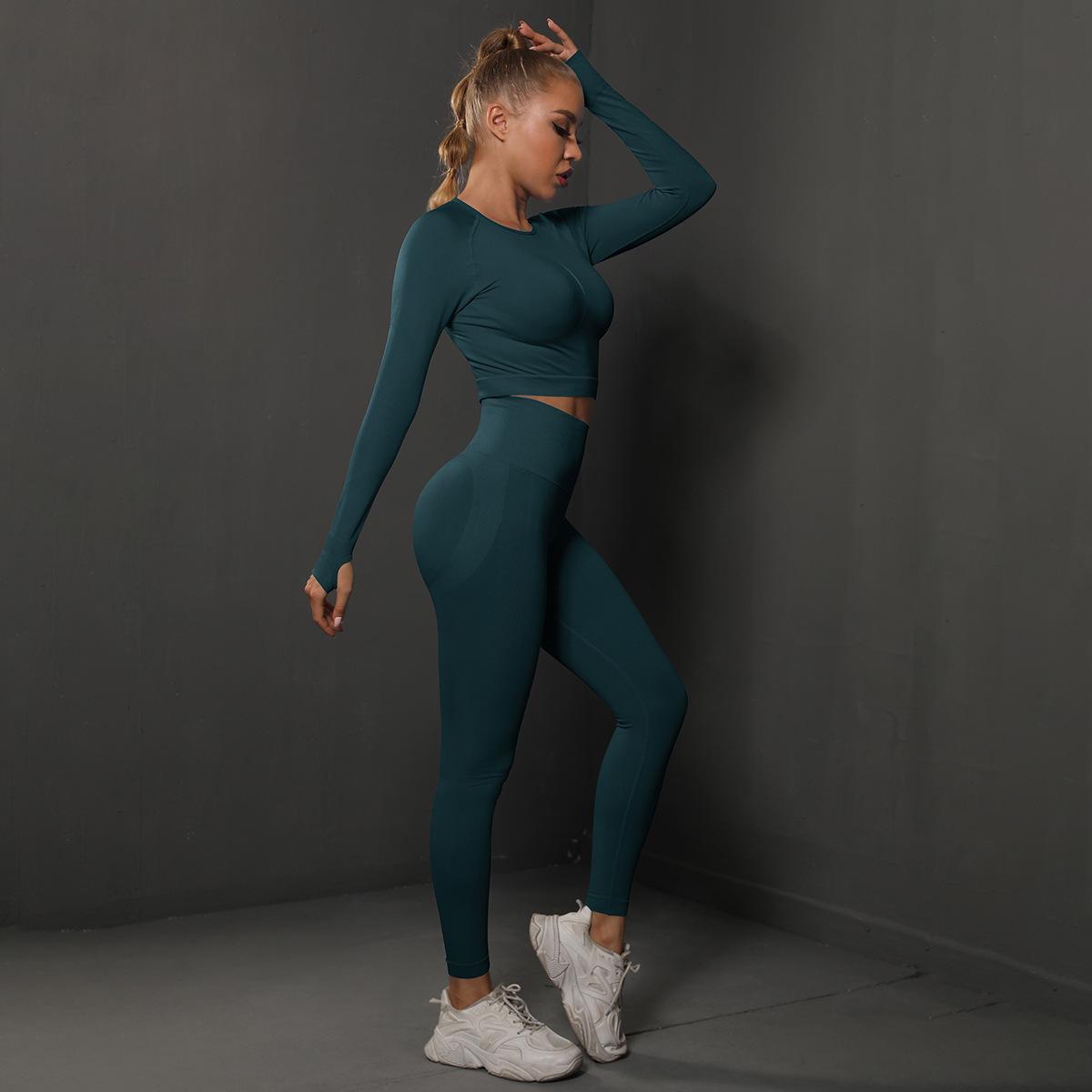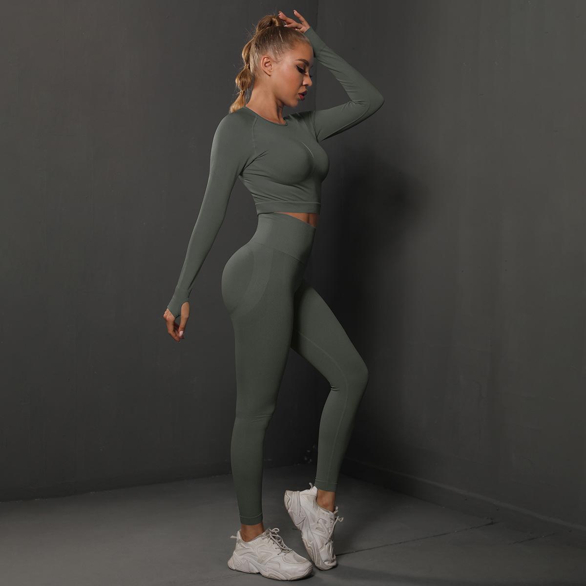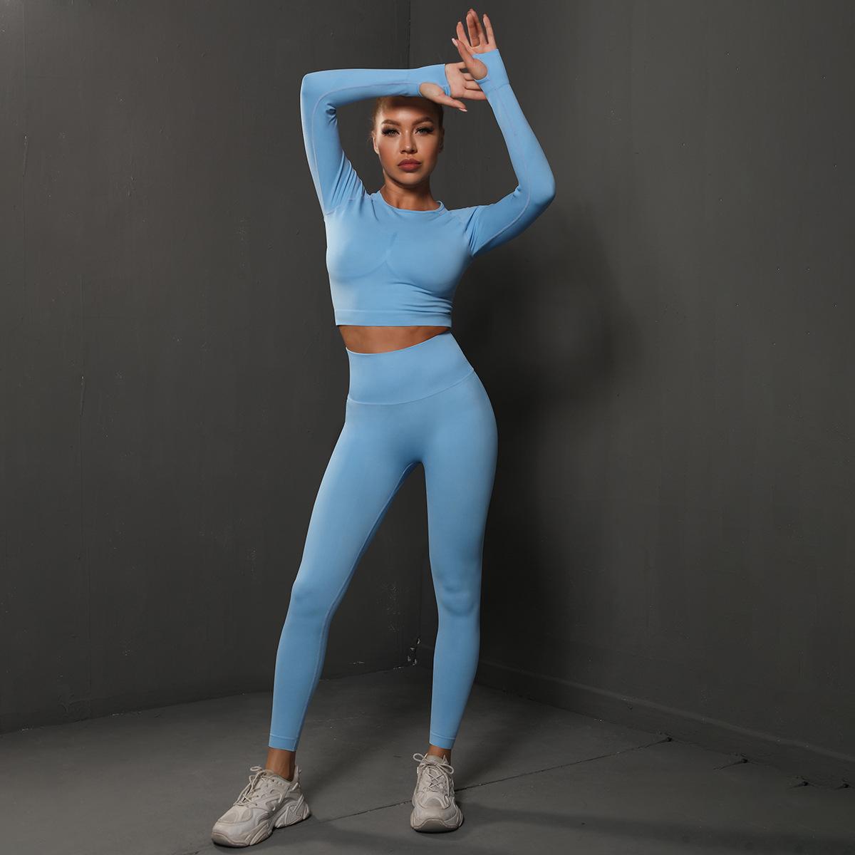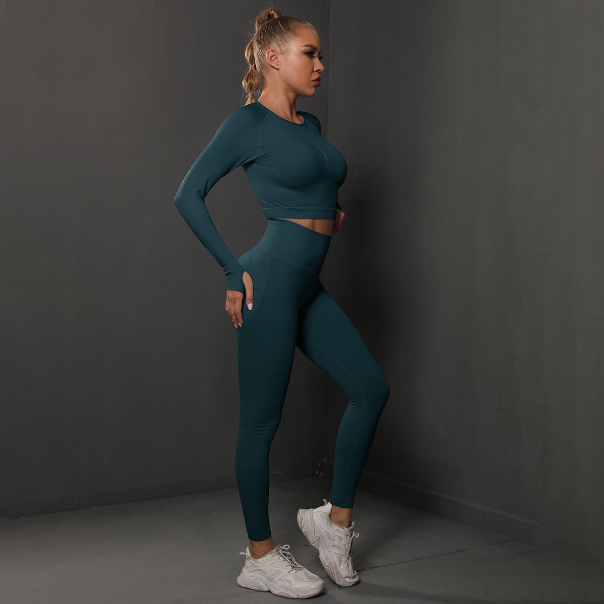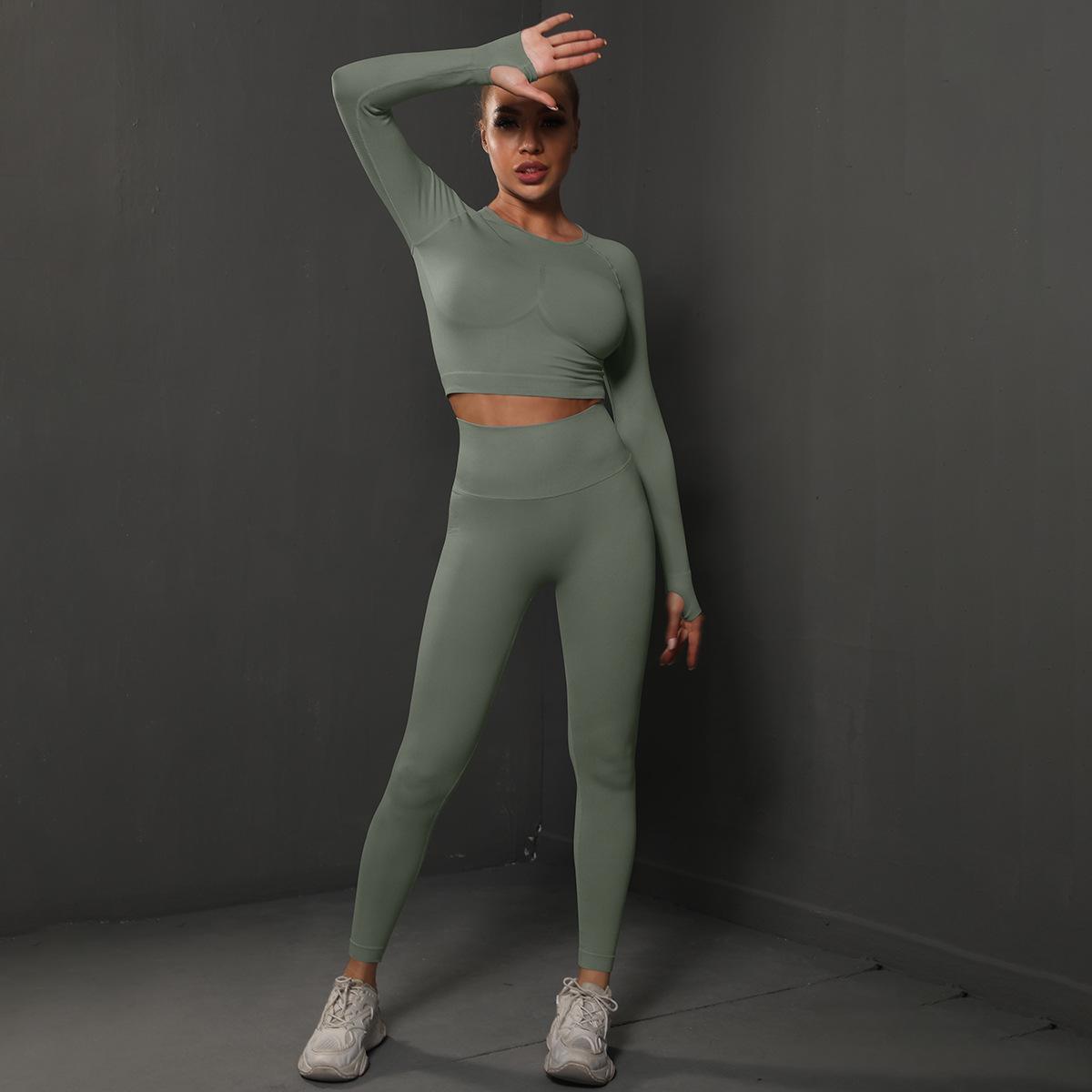 Conjunto de Ropa de Yoga de Melocotón Sin Costuras Europeo y Americano Transfronterizo para Levantar Glúteos Ajustado al Cuerpo para Deportes, Correr, Fitness, Conjunto de Dos Piezas para Mujer