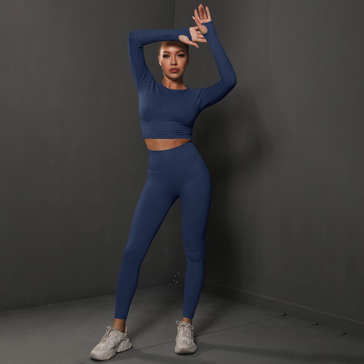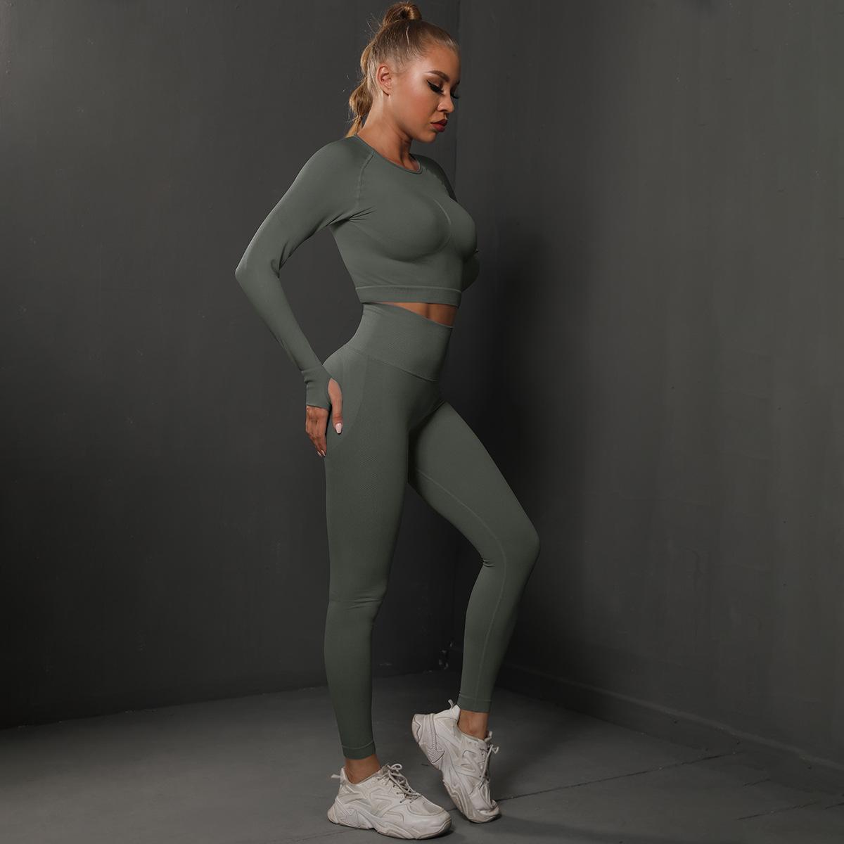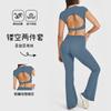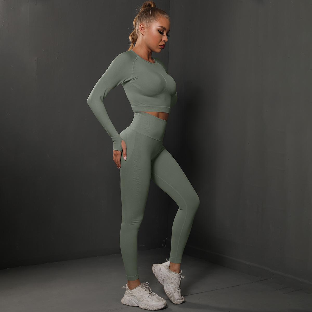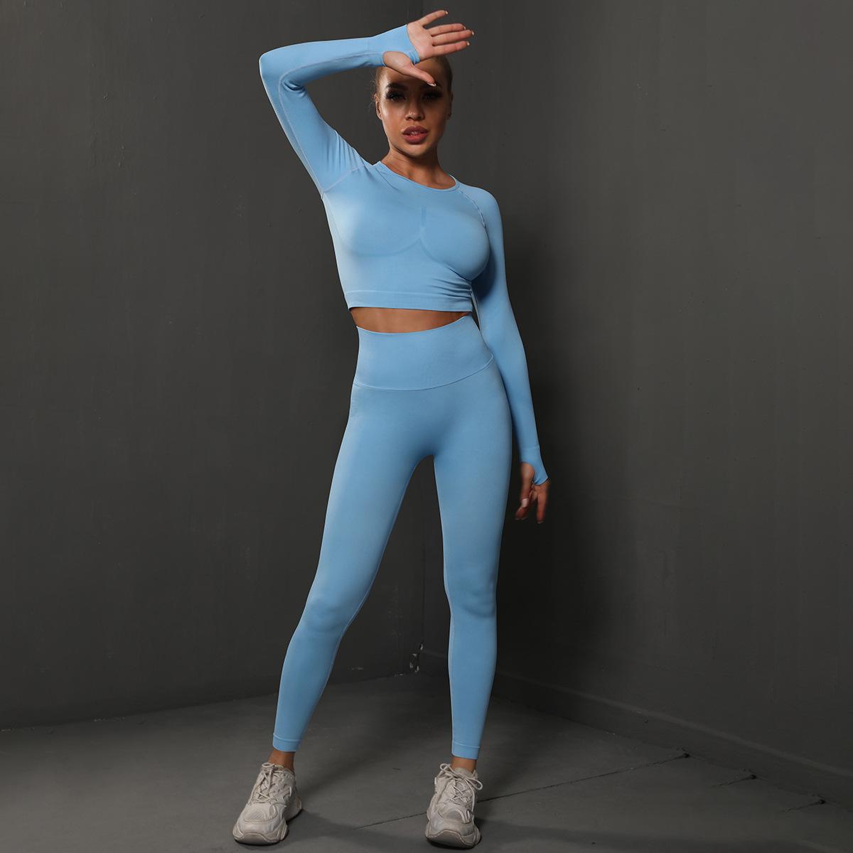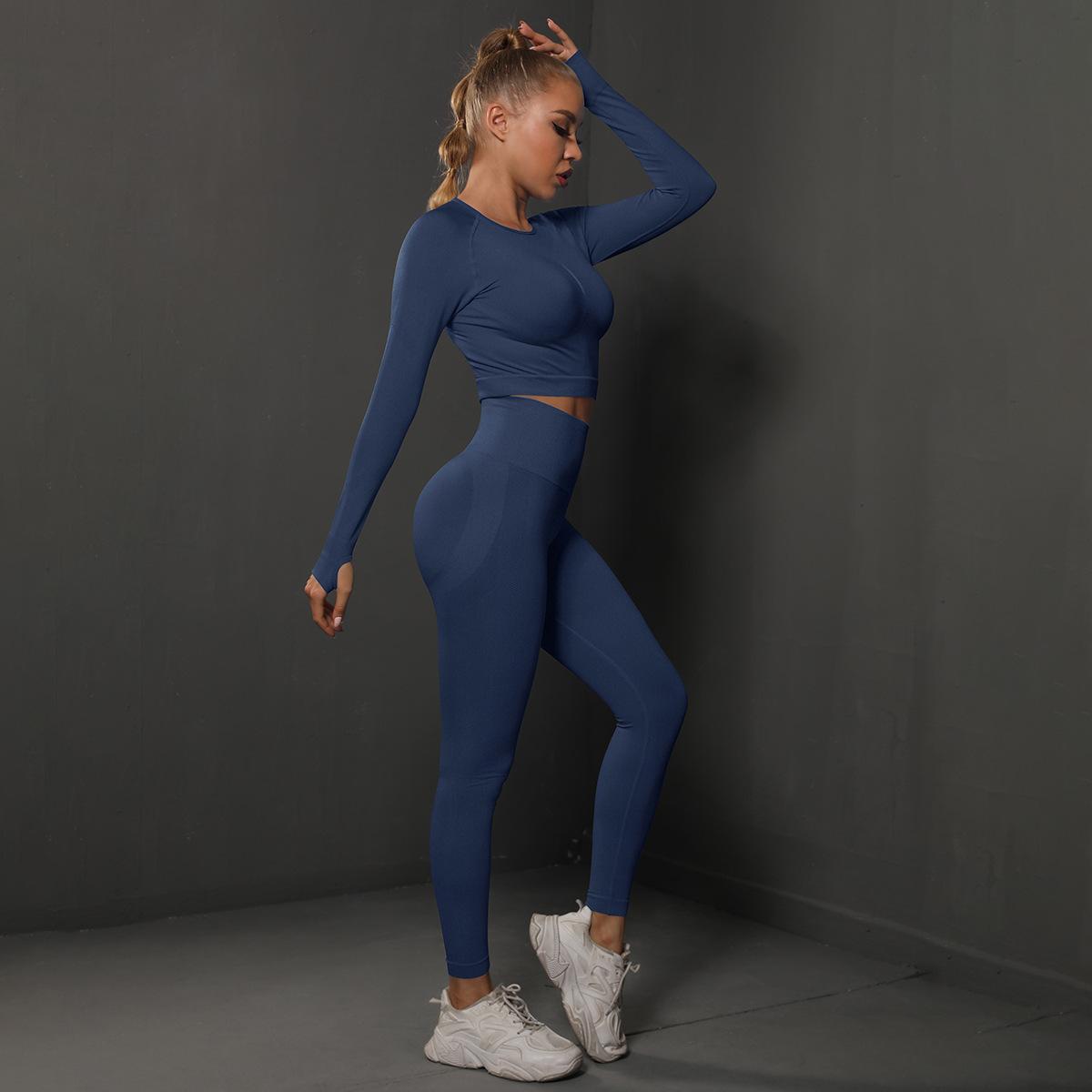 Conjunto de Ropa de Yoga de Melocotón Sin Costuras Europeo y Americano Transfronterizo para Levantar Glúteos Ajustado al Cuerpo para Deportes, Correr, Fitness, Conjunto de Dos Piezas para Mujer