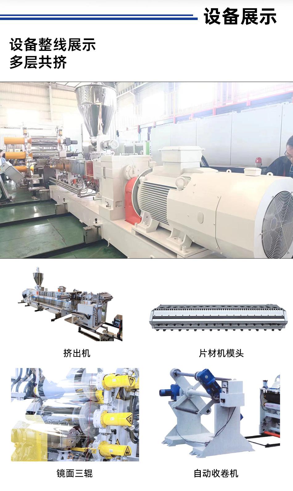 Utilizando la tecnología de coextrusión de múltiples extrusoras para producirLámina de PET compuesta coextruida multicapa, como por ejemplo: APET/PETG, PETG/APET/PETG,APET