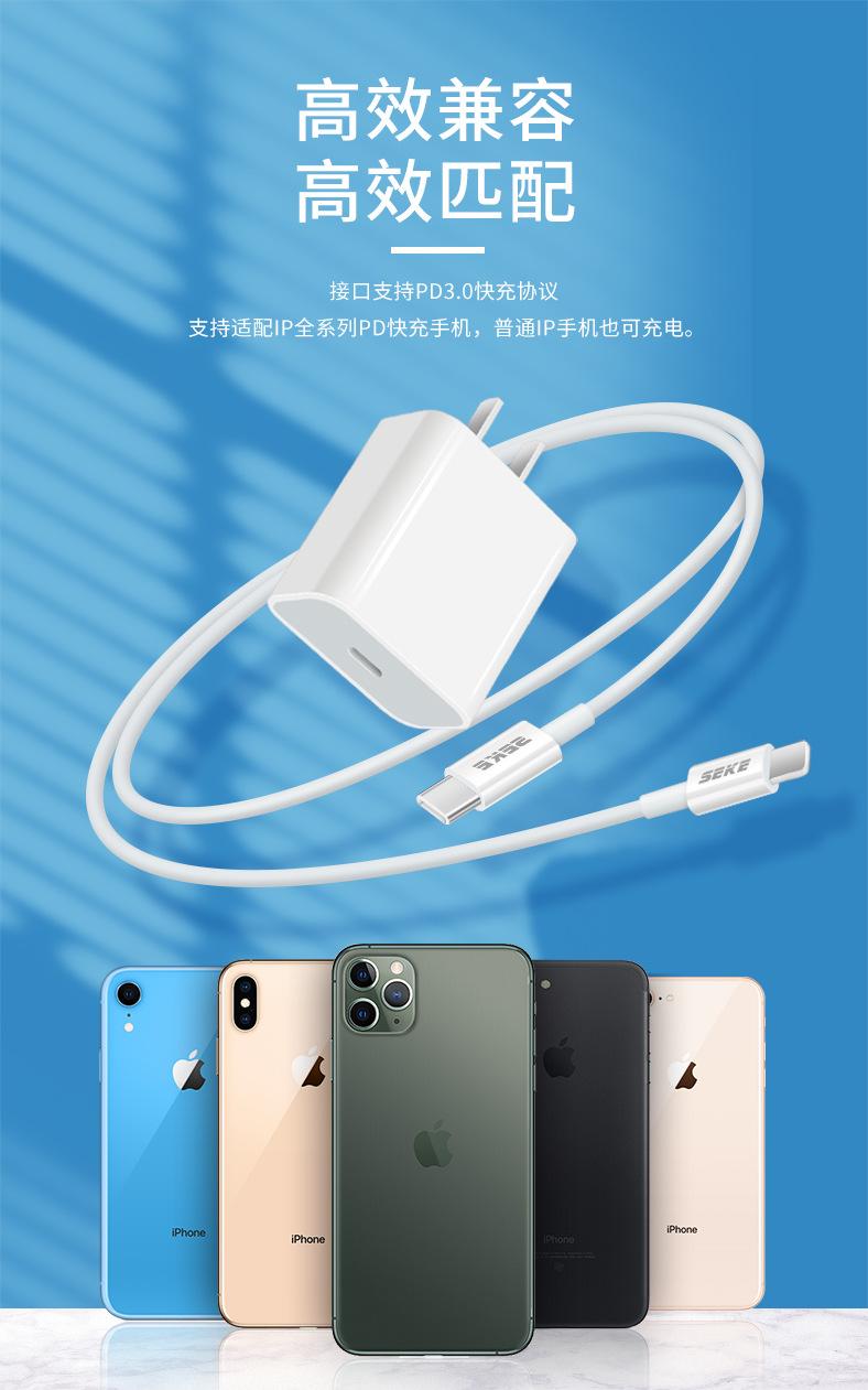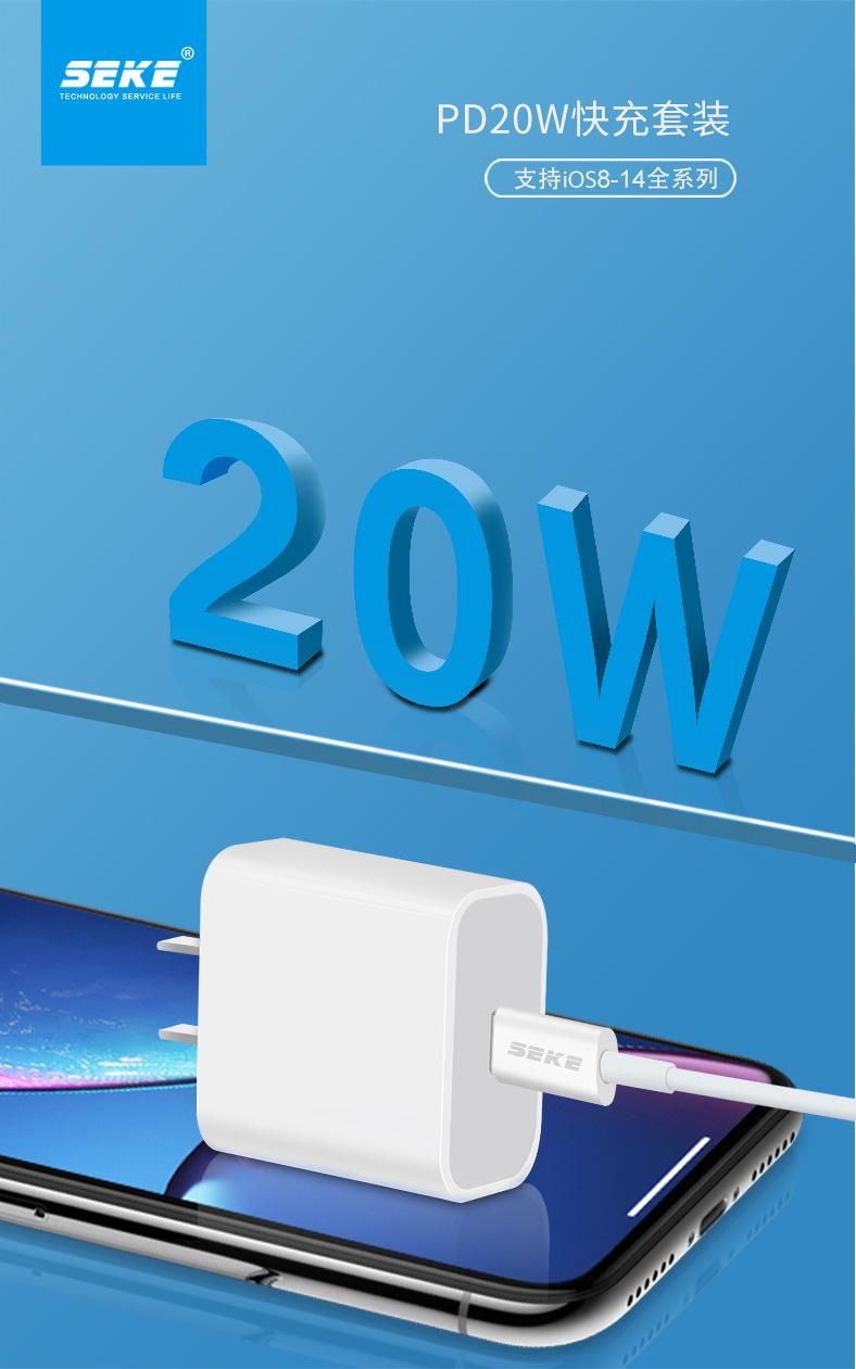 Set de carga Xike certificado 3C adecuado para teléfonos móviles iPhone 14, totalmente compatible con cargador universal PD de carga rápida de 20W