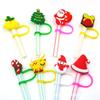 Funda de Paja Personalizada Tapa de Paja Tapón Antipolvo de Silicona Lindo Dibujo Animado Fiesta de Navidad Hebilla Decorativa para Paja Clip Productos Transfronterizos