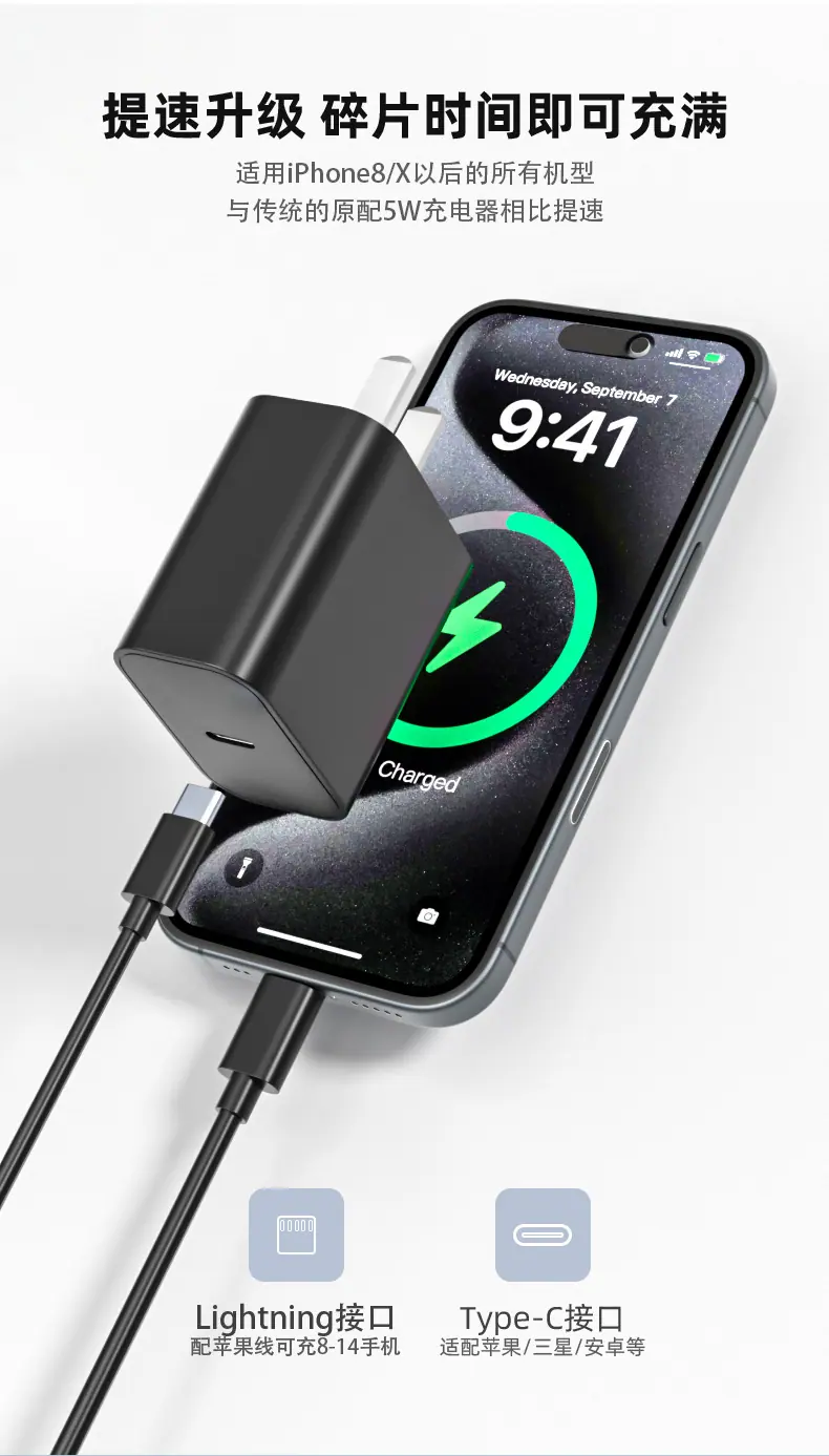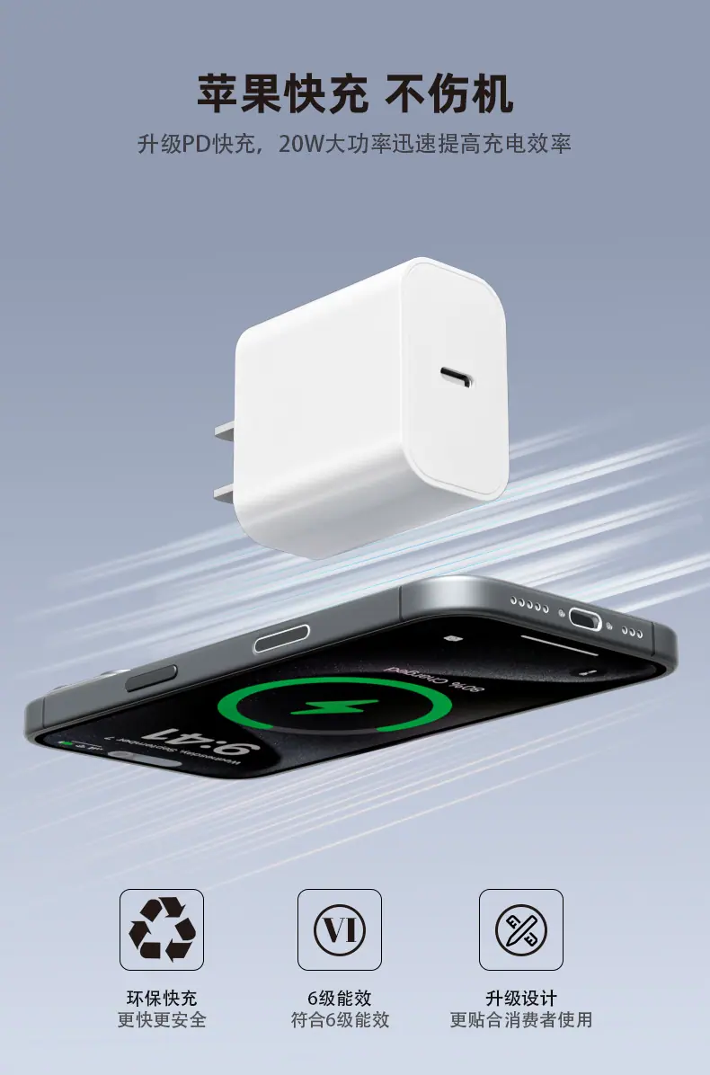 Cabezal de Carga Rápida Estándar Chino de 20W Certificación 3C Adecuado para Cargador Apple 15 Carga Rápida Serie Apple 16 Fabricante Venta al por Mayor