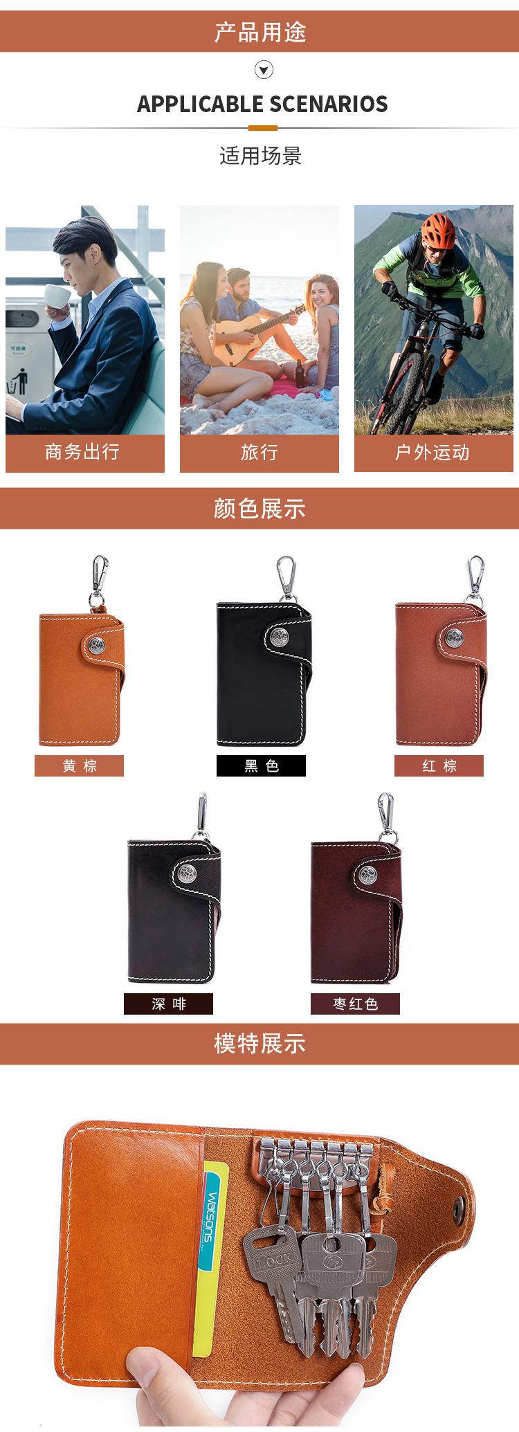 Bolso para llaves vintage clásico de cuero curtido vegetal, hecho a mano, bolso para guardar llaves transfronterizo, bolso para llaves de cuero al por mayor