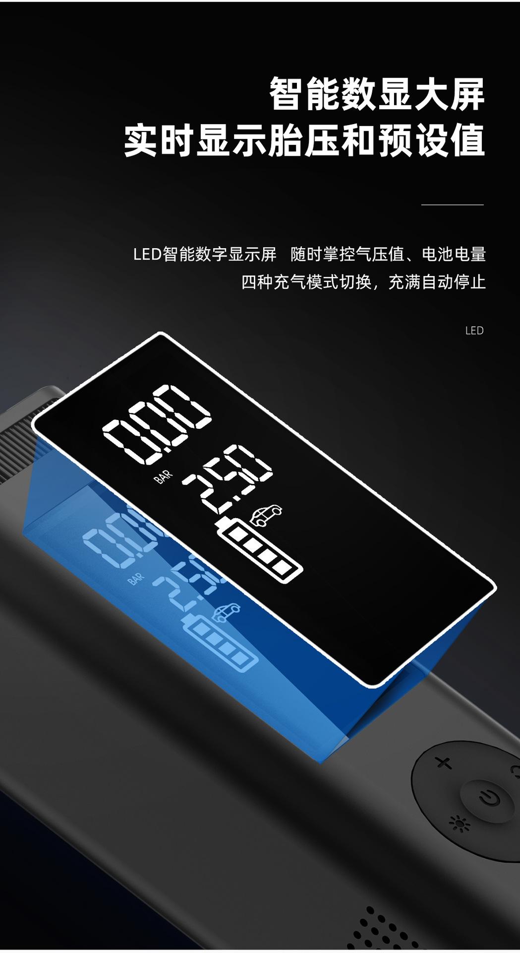 Bomba de Aire Inalámbrica Inteligente para Coche Bomba de Aire Portátil para Coche Iluminación Pantalla Digital Alta Potencia Bomba de Aire Multifunción