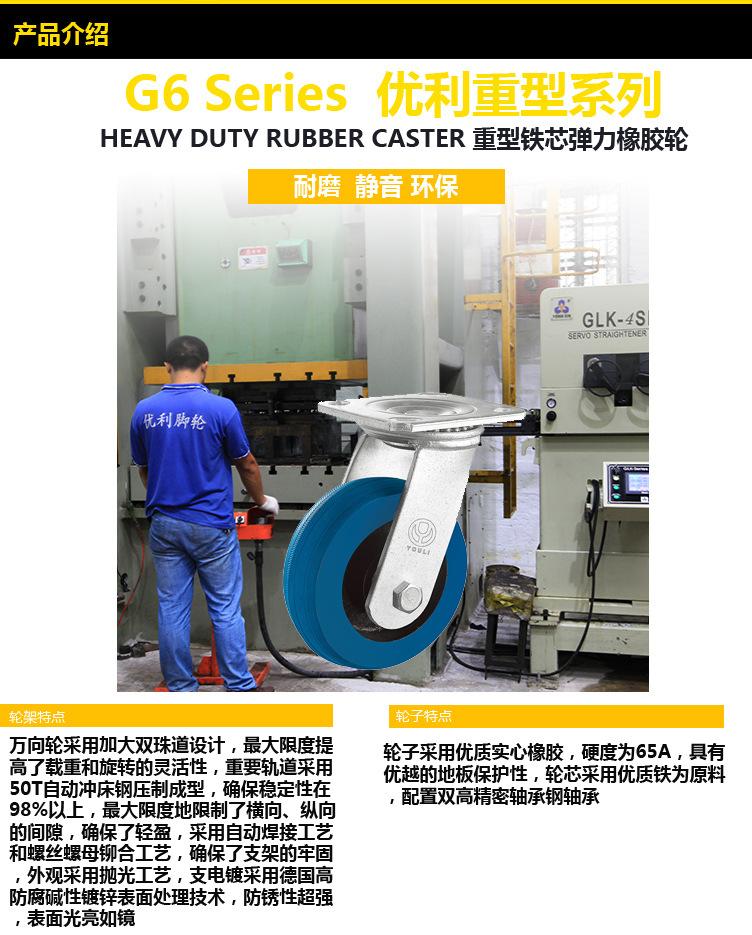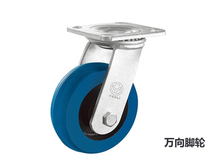 Ruedas universales de goma elástica de alta resistencia para trabajo pesado. Los fabricantes de Youli suministran ruedas silenciosas para carros de plataforma plana de 4568 pulgadas.