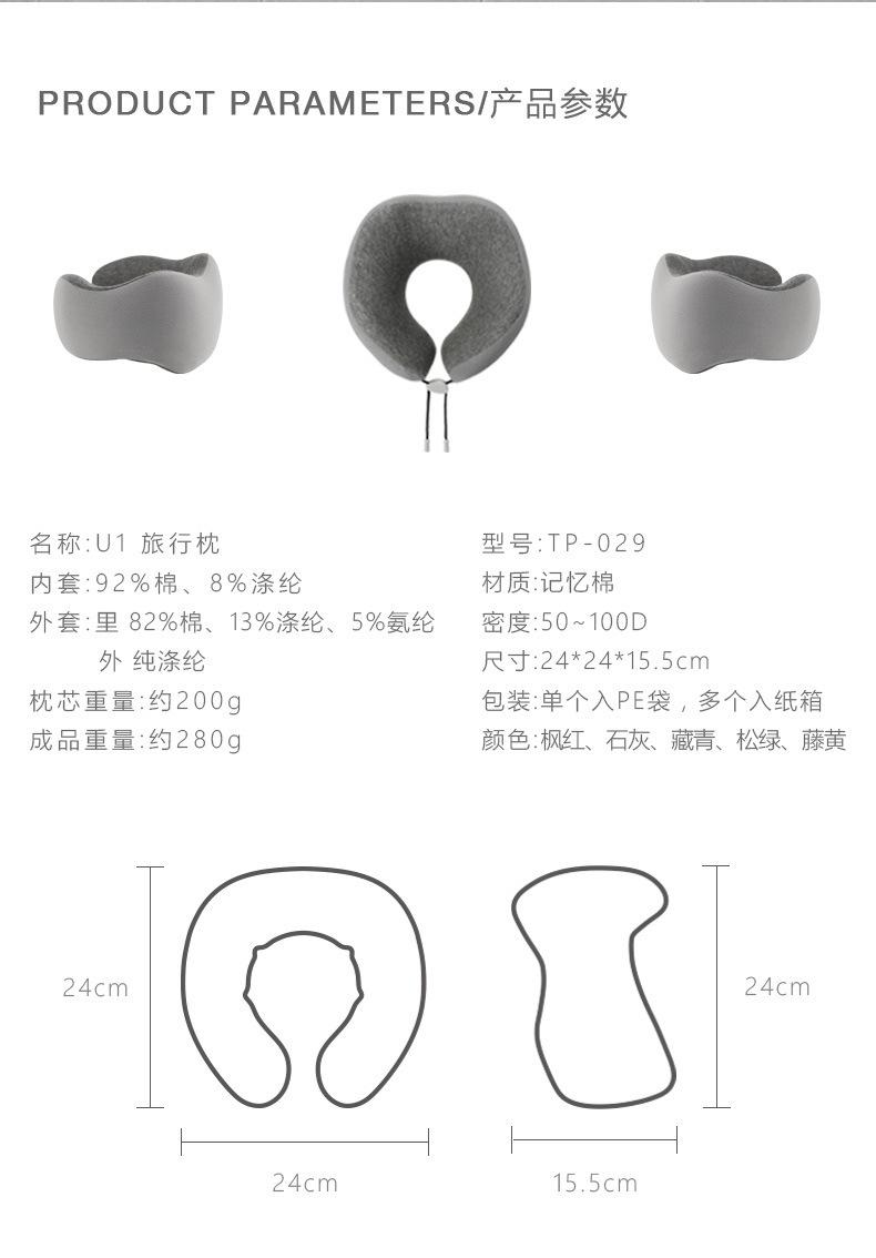 Almohada de espuma viscoelástica en forma de U, almohada de viaje portátil, cómoda almohada para el cuello, almohada para el almuerzo de oficina, almohada cervical para aviones, almohada en forma de U