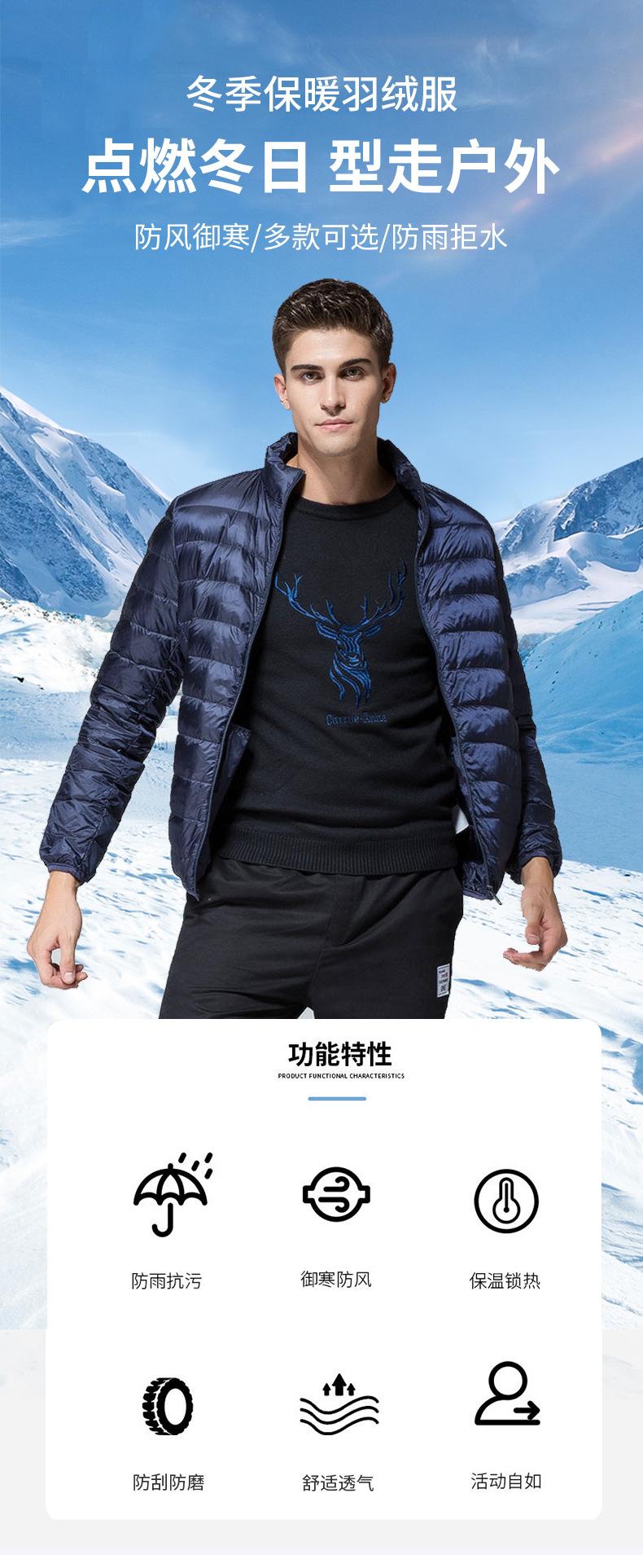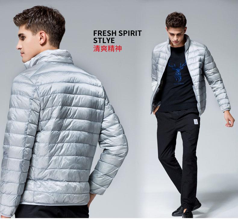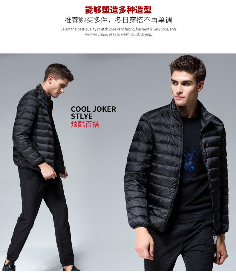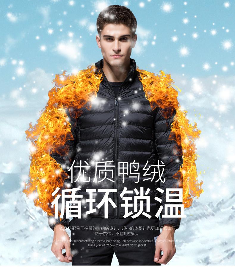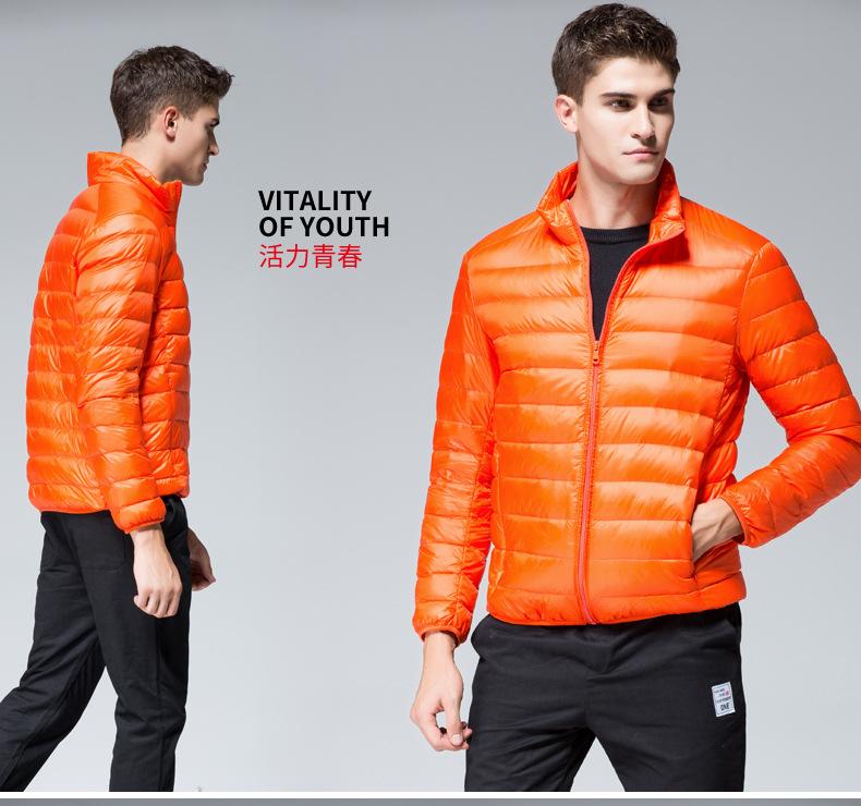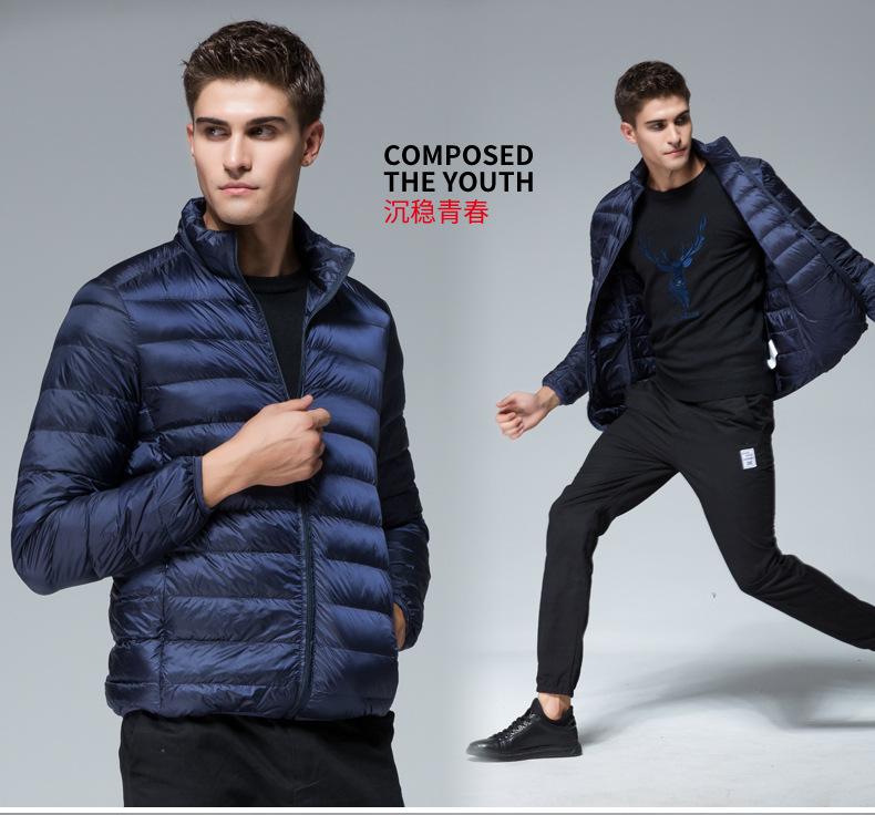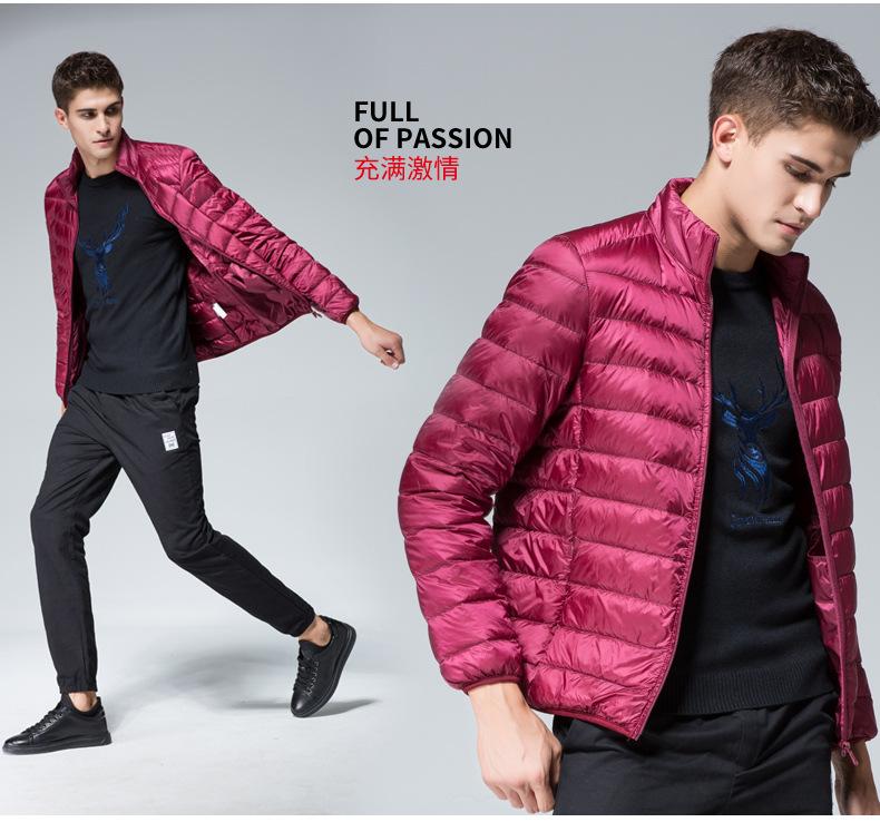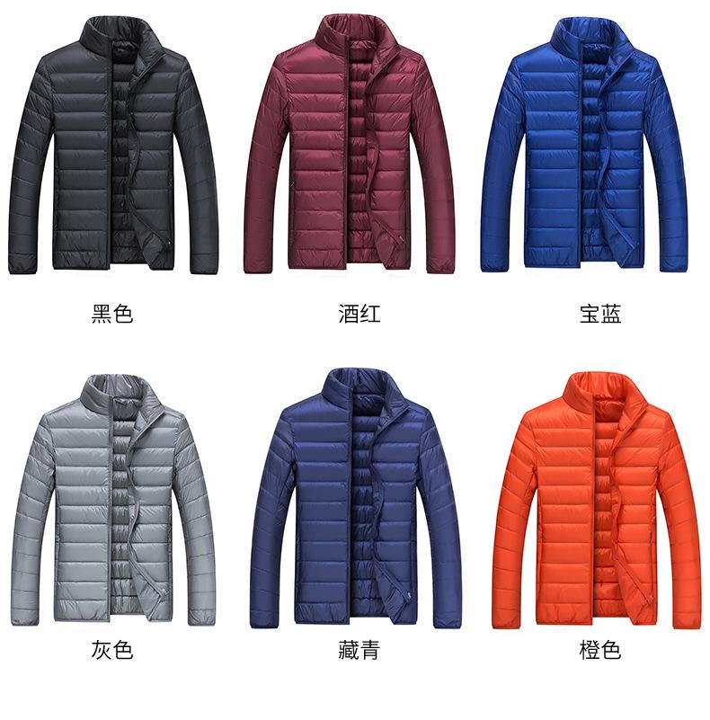 Chaqueta de plumón para hombre, otoño e invierno, plumón de pato blanco, cálida chaqueta acolchada de algodón, abrigo ligero, delgado, cuello corto, chaqueta de plumón, venta al por mayor