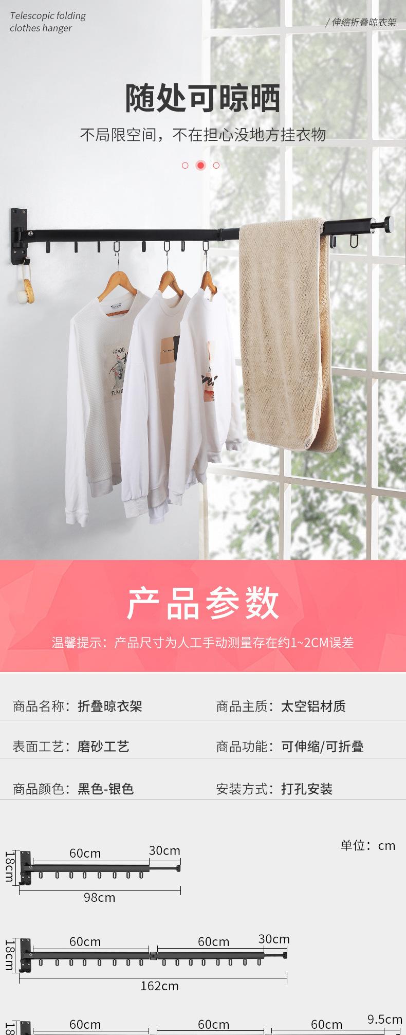 Compra Perchero plegable para colgar en la pared, para balcón, hogar, invisible, telescópico, para secar ropa en interiores, sin balcón, venta al por mayor al por mayor en Joom.pro