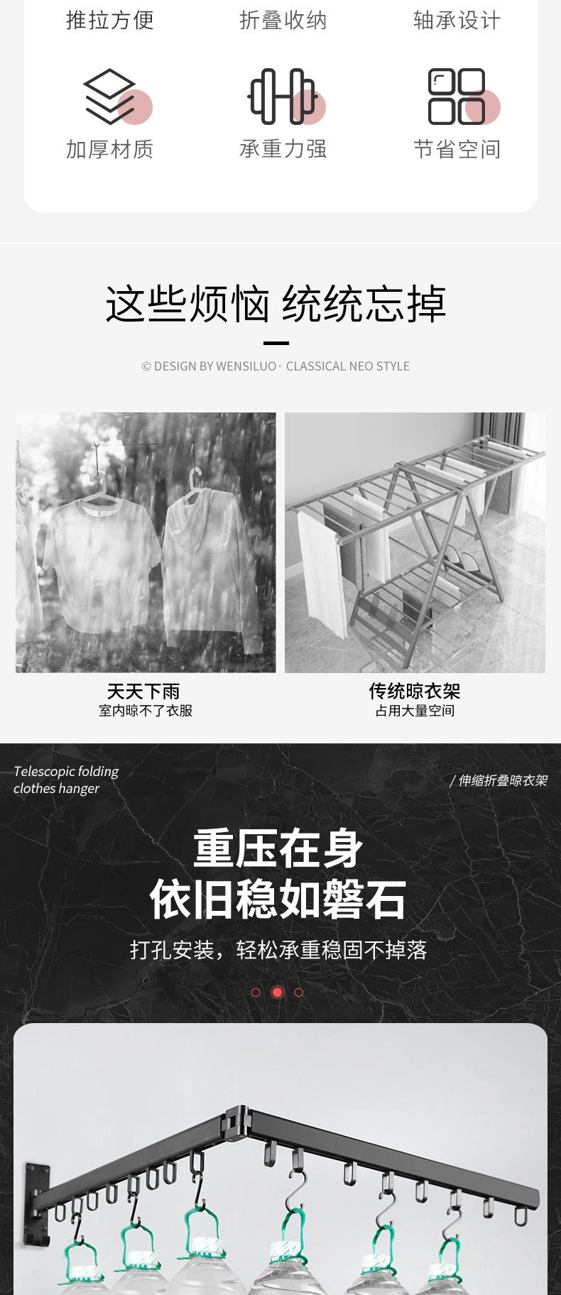 Perchero plegable para colgar en la pared, para balcón, hogar, invisible, telescópico, para secar ropa en interiores, sin balcón, venta al por mayor